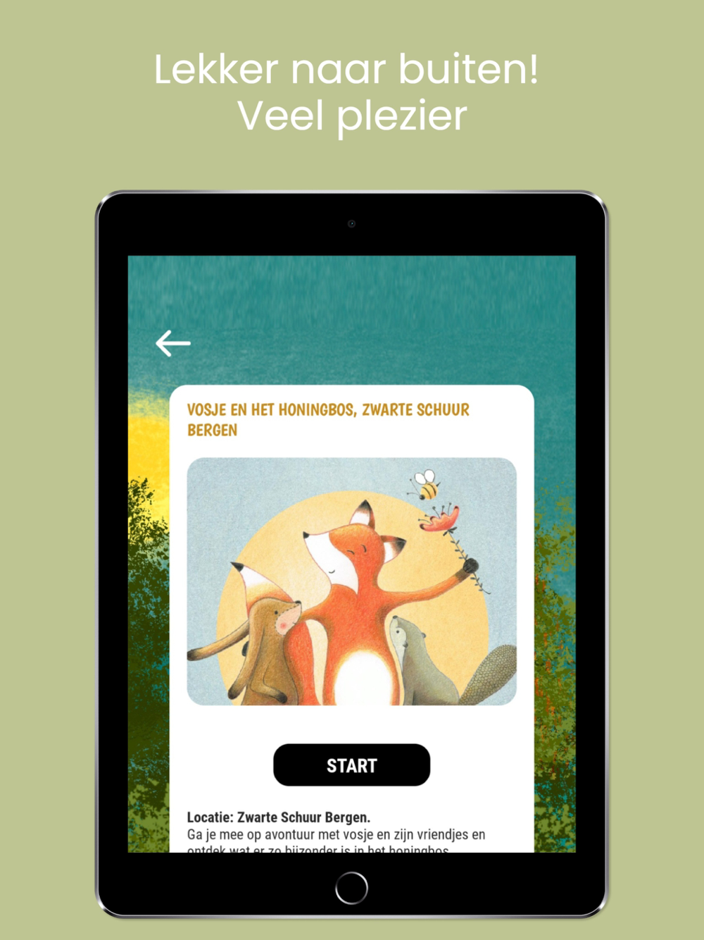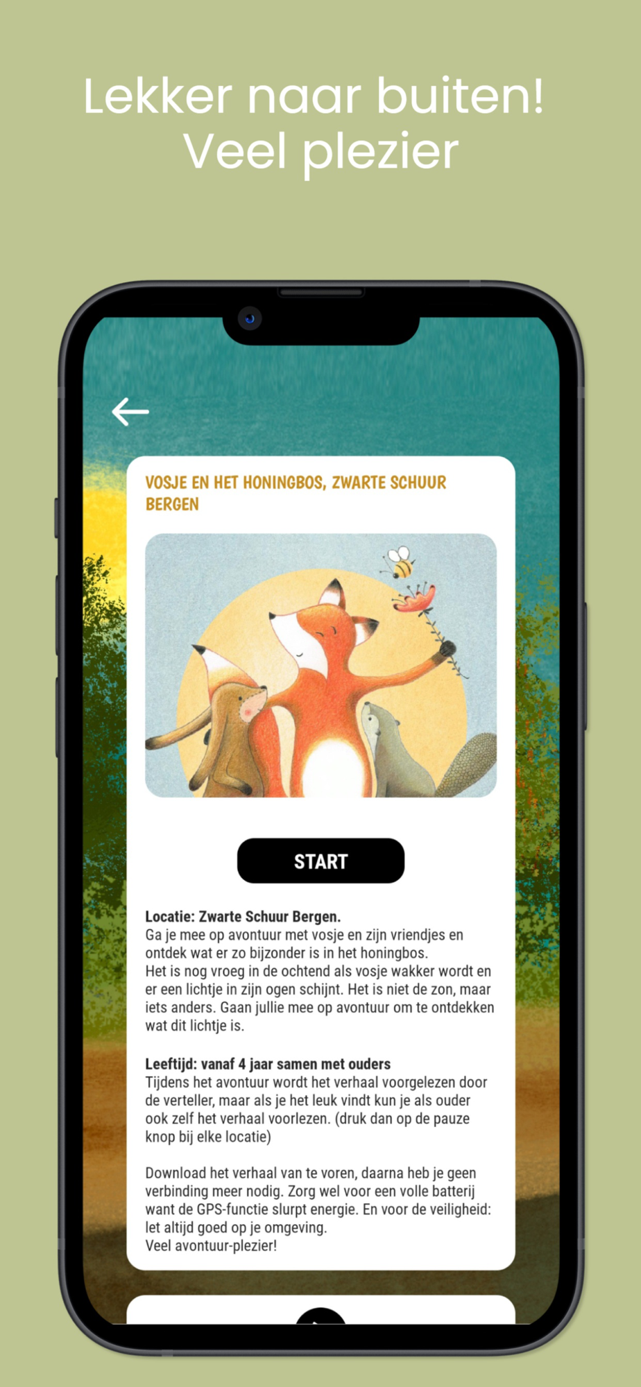 De locatie gebaseerde GPS stories in de app veranderen de locatie elke keer weer in een nieuwe avonturenwereld waar kinderen met ouders urenlang en over meerdere dagen verspreid het nieuwe buiten spelen ontdekken.