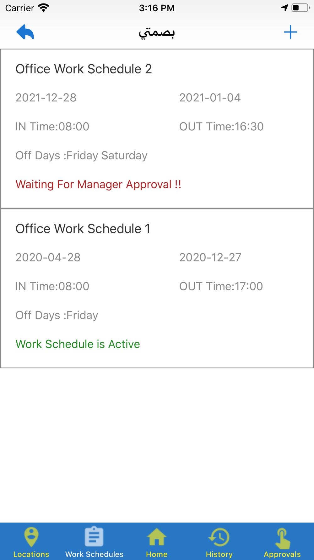 - The employee can select the work schedule. and it will be activated after his manager and HR approvals.