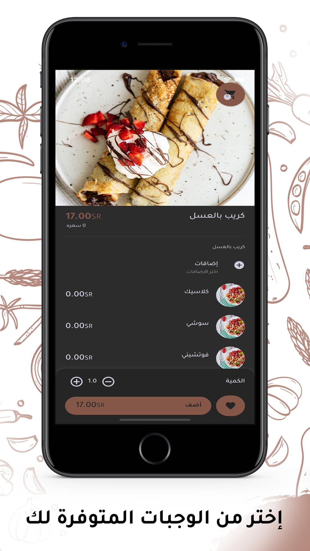 - اختر من قائمة الطعام ما لذ وطاب واضفها للسلة