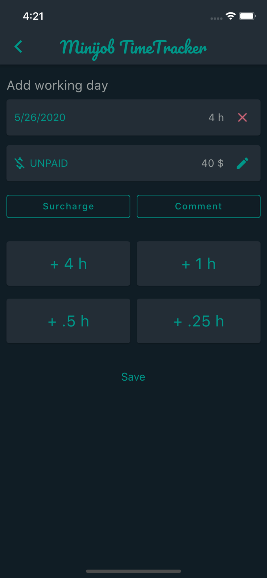 Mit dem Minijob TimeTracker kannst Du deine Arbeitsstunden schnell und einfach erfassen. Unterscheide zwischen noch offenen Stunden und bereits ausgezahlten Arbeitstagen - markiere offene Stunden als bezahlt, sobald diese ausgezahlt wurden.