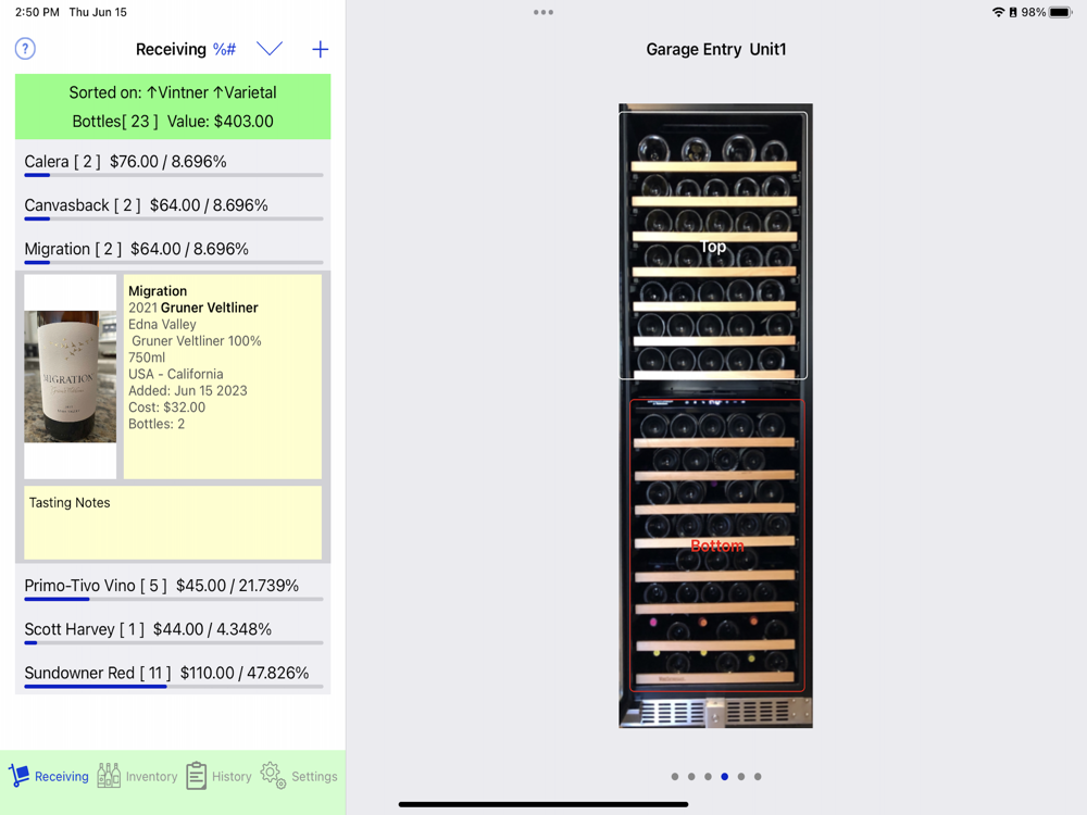 WineStock allows you to capture the details of each bottle, including tasting notes and suggestions on when you should drink it as well as the ability to specify exactly where the bottle is stored.