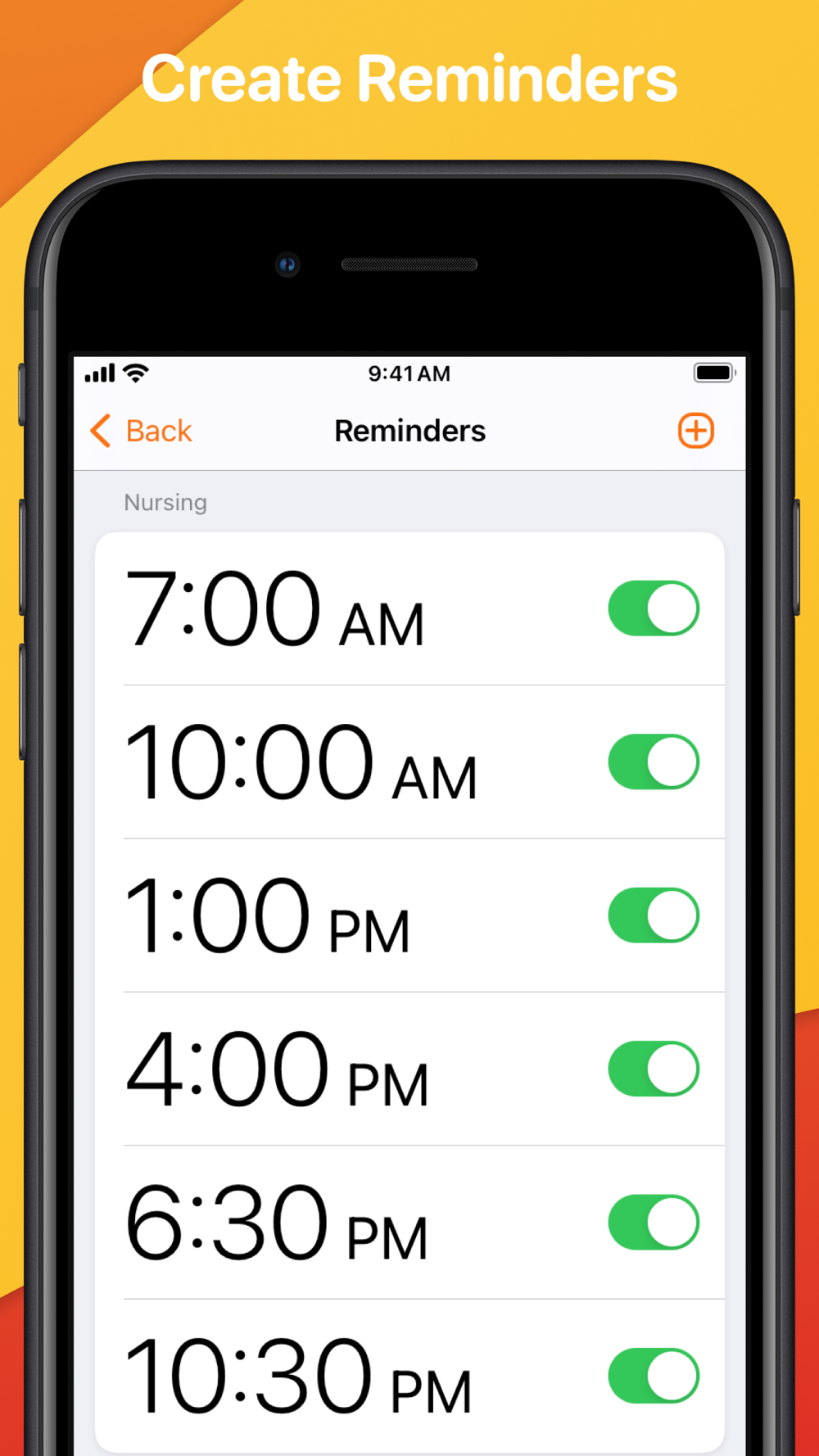 + iCloud share: Share your child's profiles with your partner or caregivers to log activities together without sharing a device or iCloud account.
