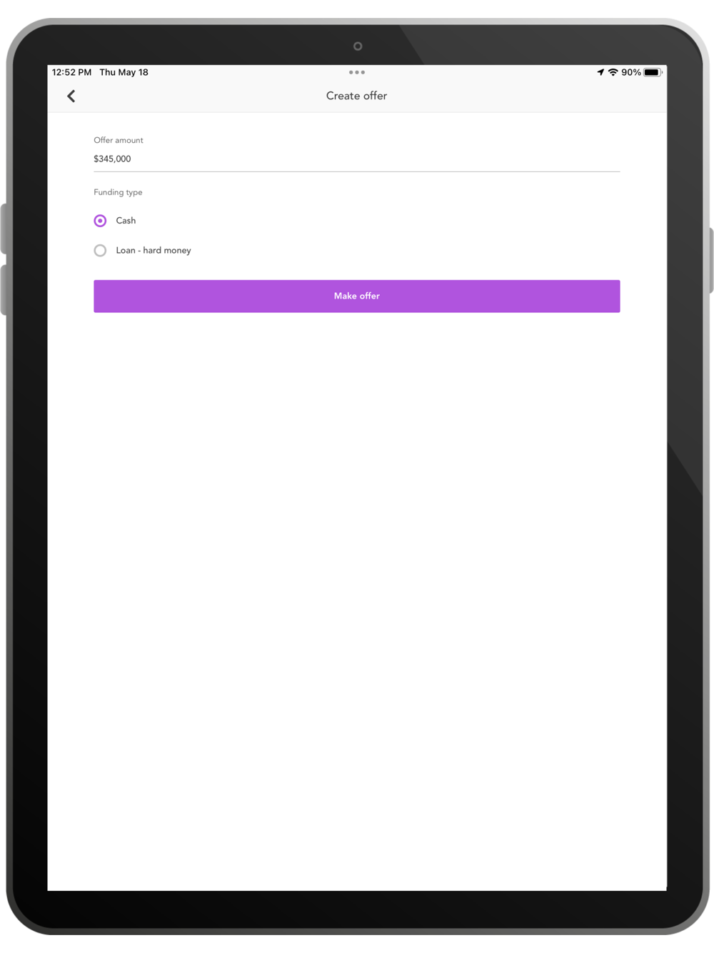 Get key property stats and the specific numbers you need to do an accurate valuation for your investment strategy. Share properties with your partners and contractor. Chat directly with the seller to get any questions answered. Whether you need to forecast ROI, NOI, or to run ARV or rent estimate calculations, you’ll have the information you need, at your fingertips. Then make an offer right from your mobile device.