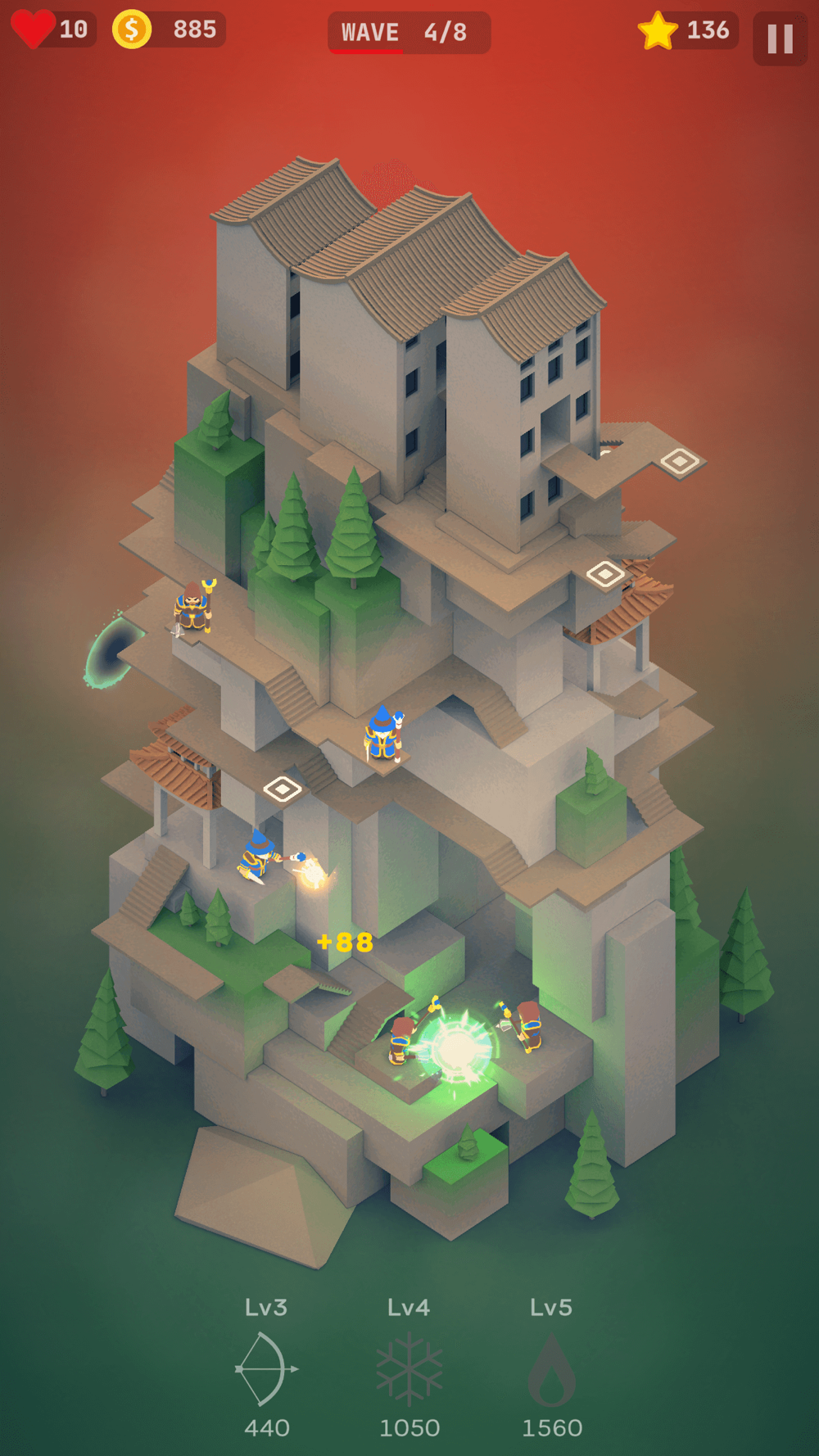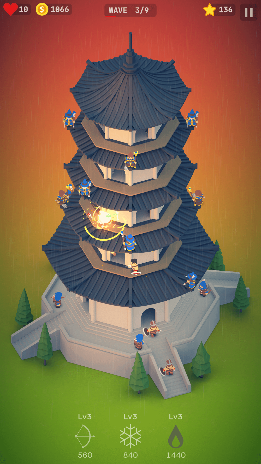 All Levels are beautiful 3d Axonometric building,Stop the king and his soldiers from passing the castle.
