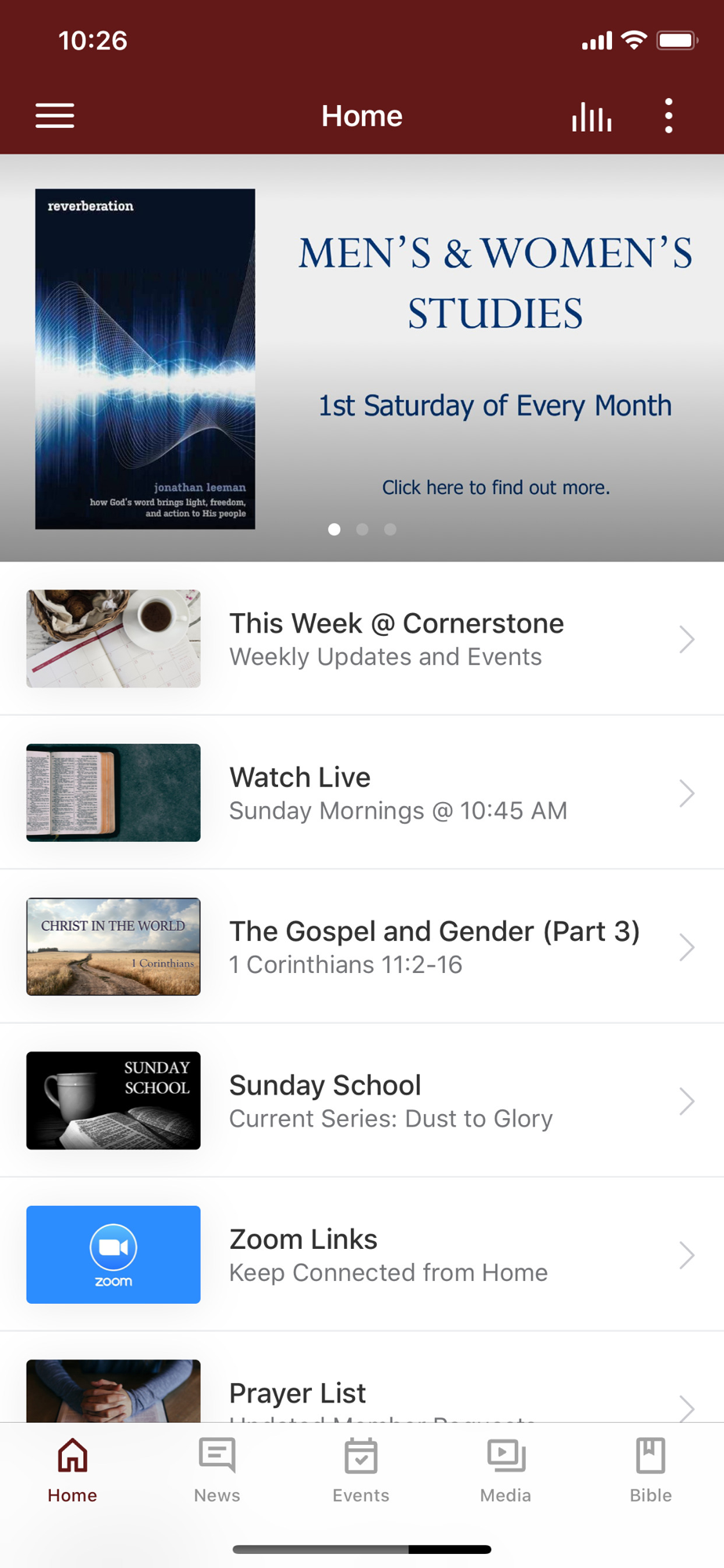 This app will help you stay connected with the day-to-day life of our church. With this app you can: watch or listen to past messages; stay up to date with push notifications; share your favorite messages via Twitter, Facebook, or email; and download messages for offline listening.