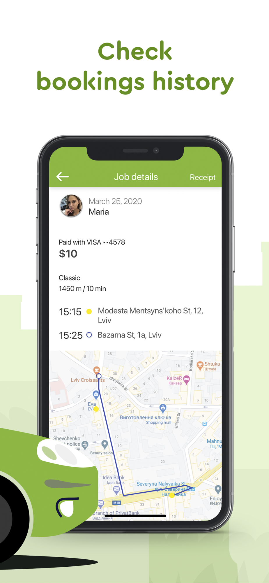 • Make money on flexible terms. The more trips you make, the higher income will be;