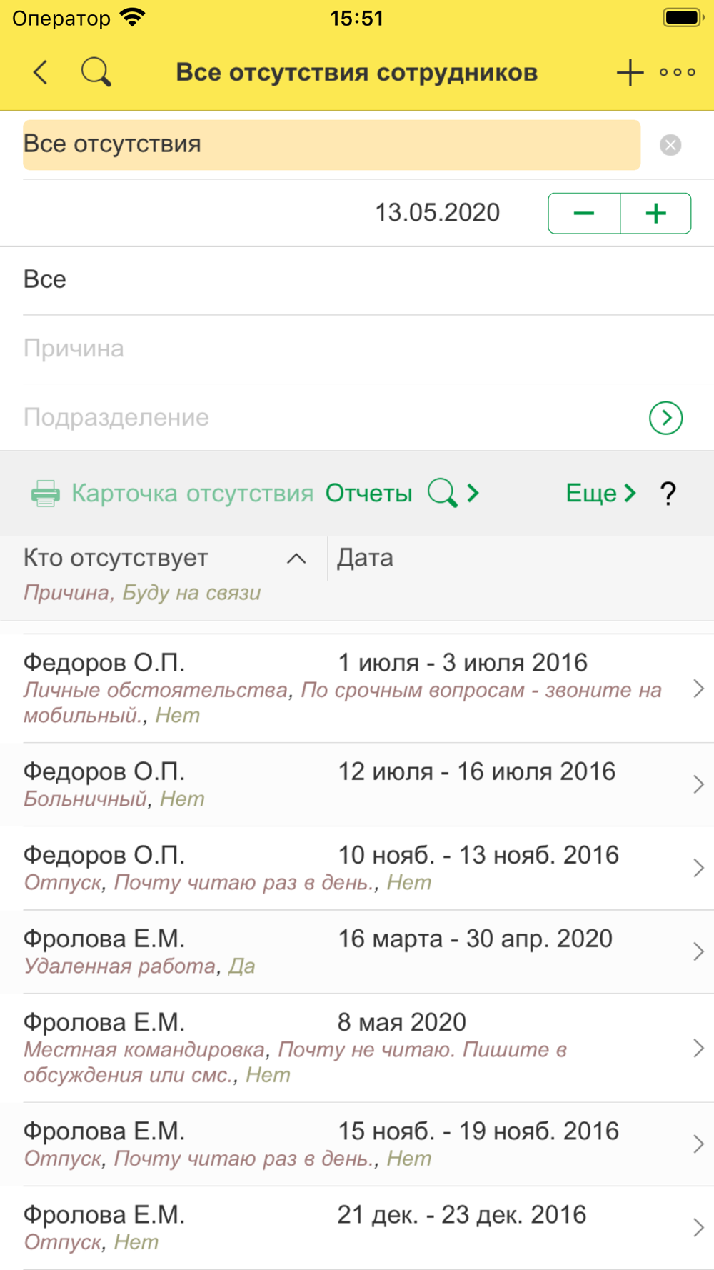 - Отсутствия