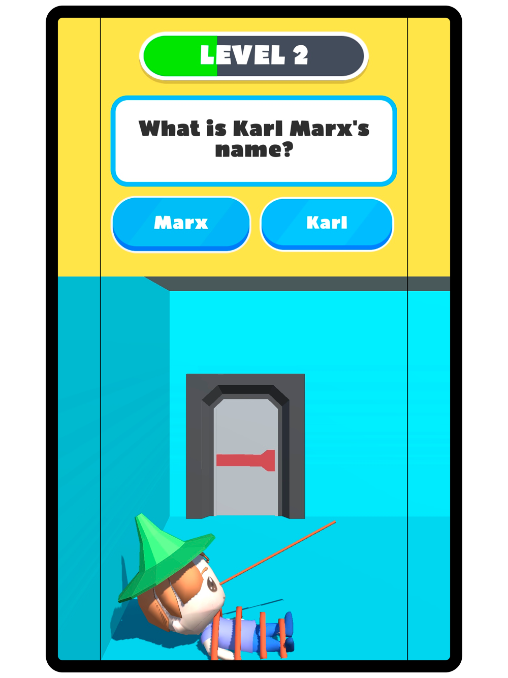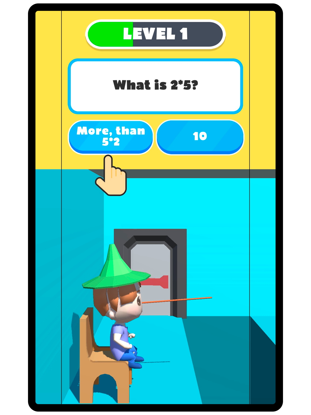 - Answer the questions wrong to make your nose longer and save the pinocchio!