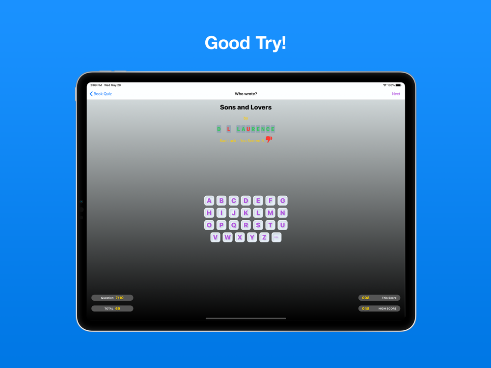 If you enjoy the quiz, you can buy more quizzes - Science Fictions books, Booker Prize winners, Pulitzer Prize winners and Classic Novels.