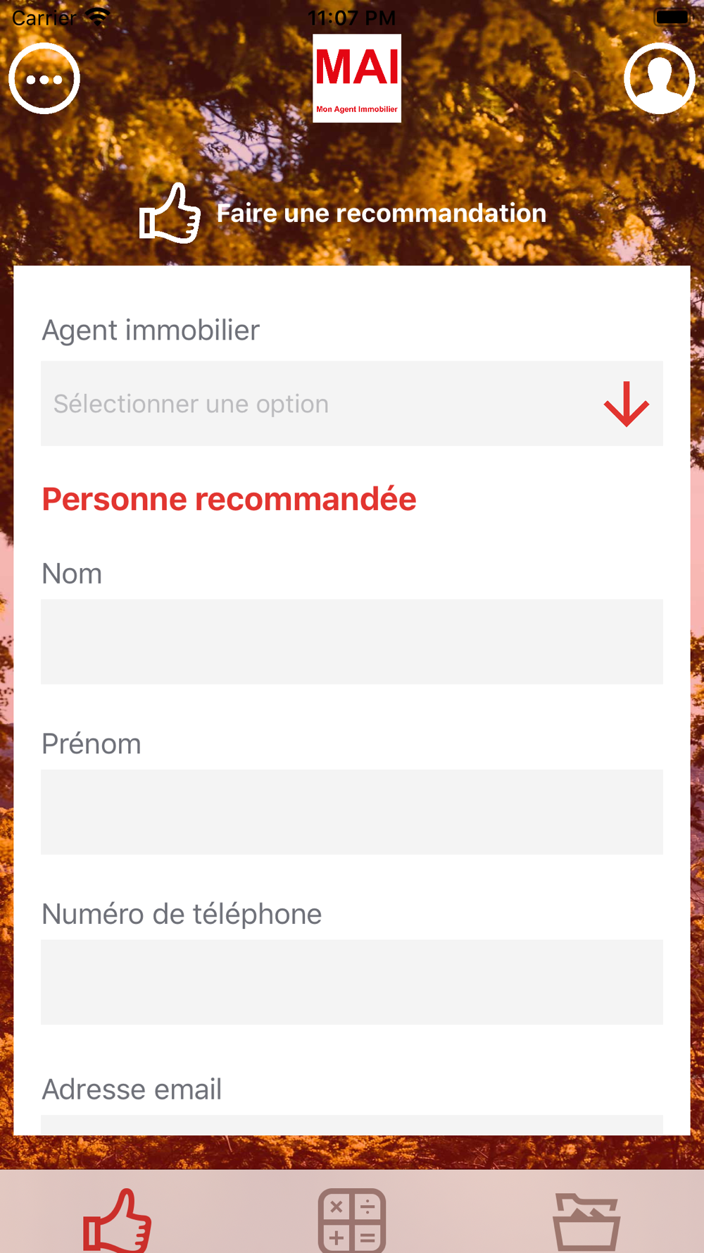 Grâce à l'application Mon Agent Immobilier vous allez à la fois pouvoir faire une recommandation d'un ami, voisin, famille, etc à l'agent immobilier de votre choix, mais également pouvoir calculer vos mensualités de remboursement de votre crédit immobilier.