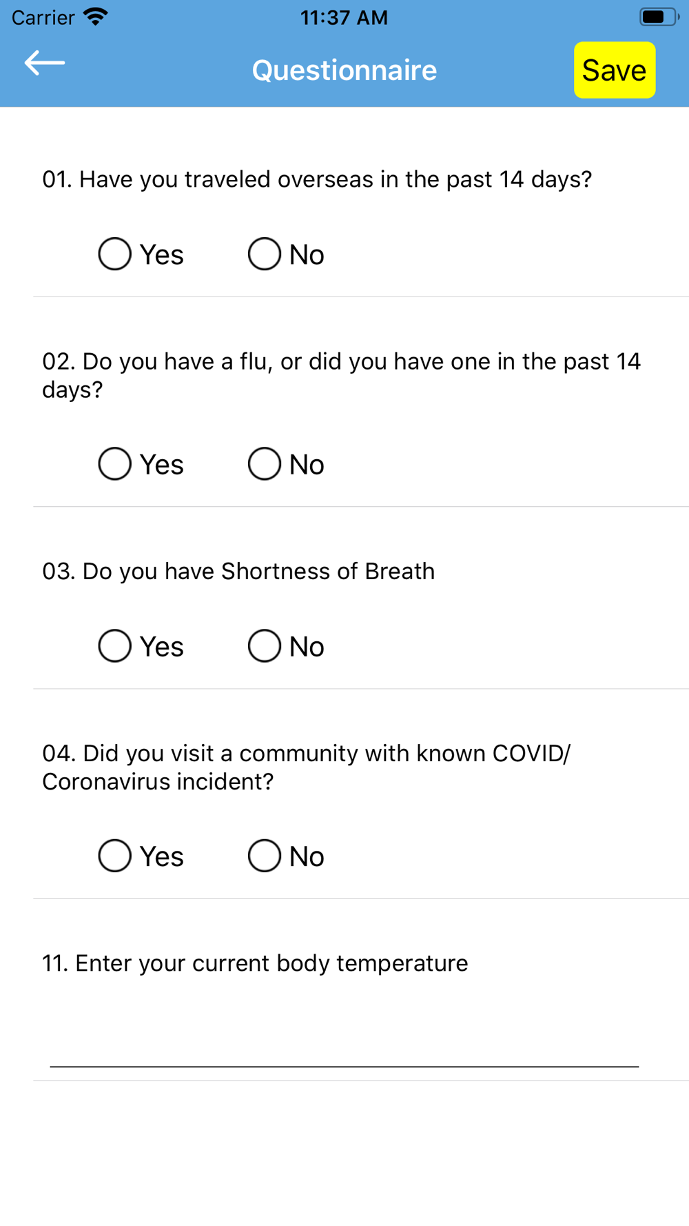 Note: The app does NOT provide any indication that the user has, or is at risk for, COVID. It's purposes is only for the facility to document information for compliance purposes.