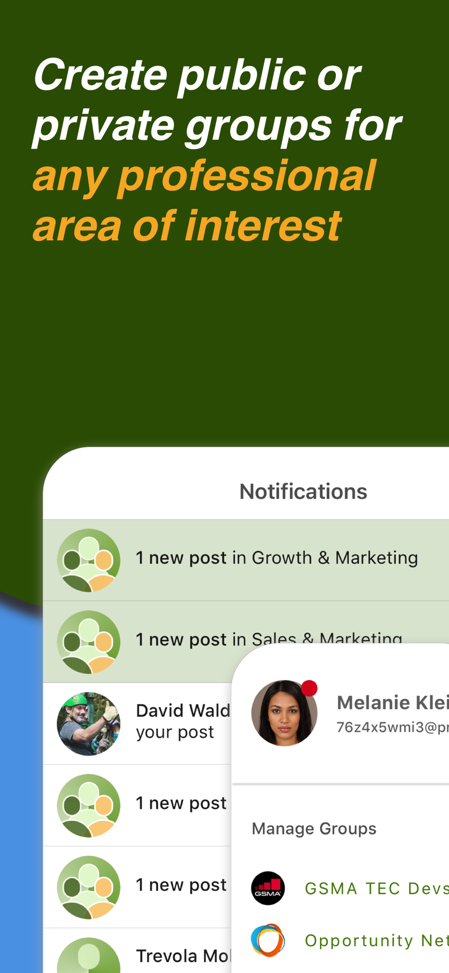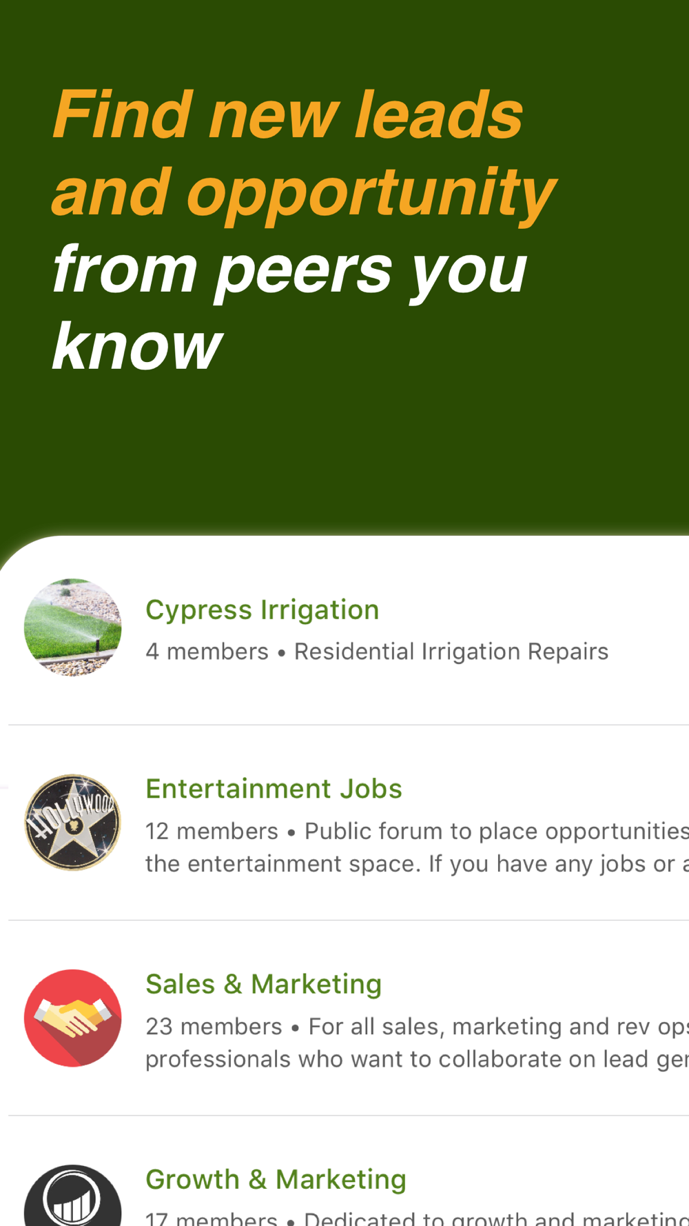 First, create a public or private group to post focused lead requests fast. Private groups allow you to maintain control over who collaborates on opportunities you are working on. Keep your group public to create a powerful source of new leads.