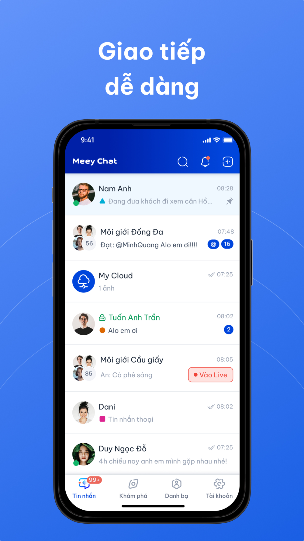* Tạo nhóm chat nhanh và trao đổi thông tin dễ dàng, liên tục