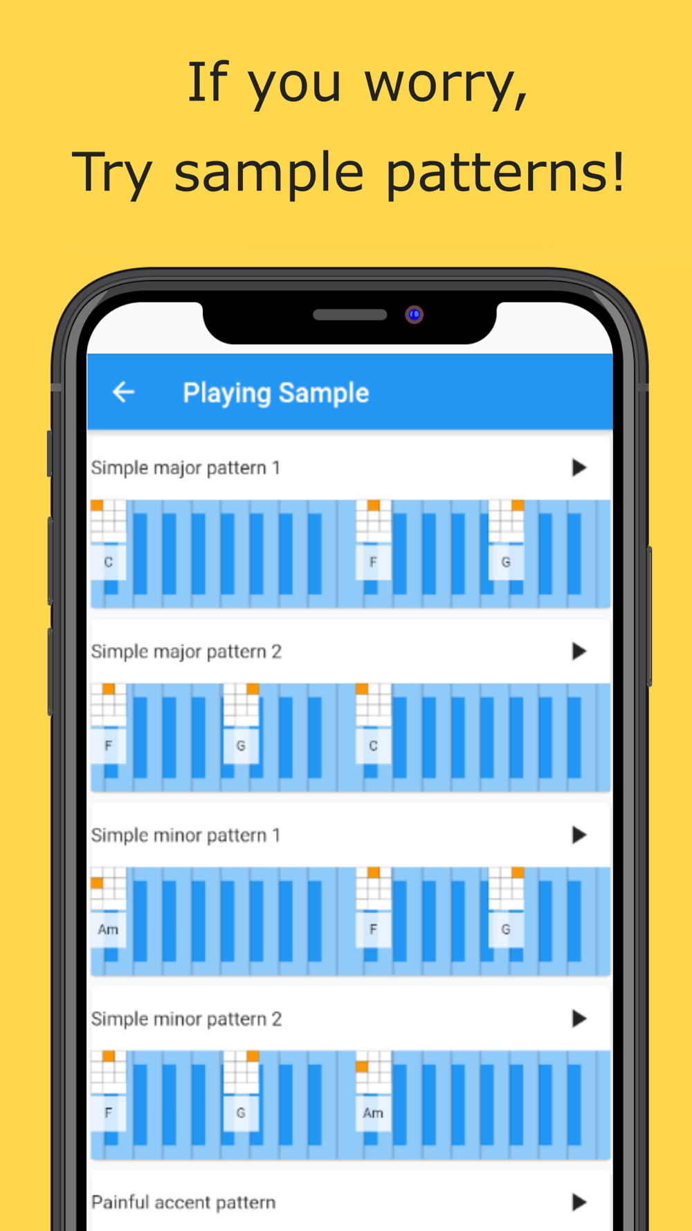You can play music automatically. And you can change playing notes of code by tapping buttons. So anyone who has never played music can play original music.