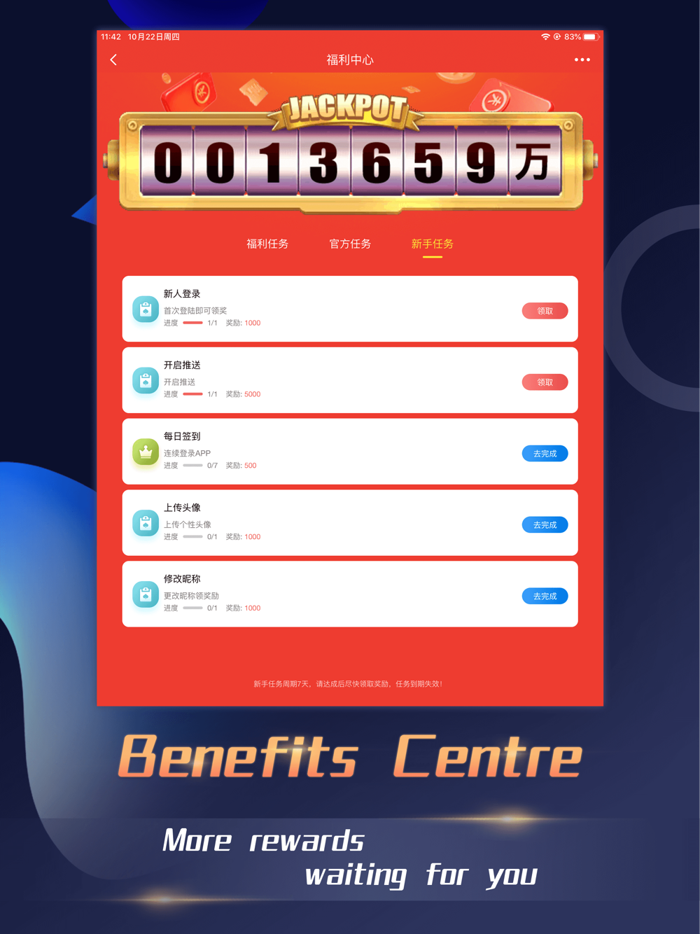 The Benefits Centre is newly upgraded.Log in to check in fun tasks every day, and you will receive massive surprise welfare rewards. There are many benefits, just waiting for you!
