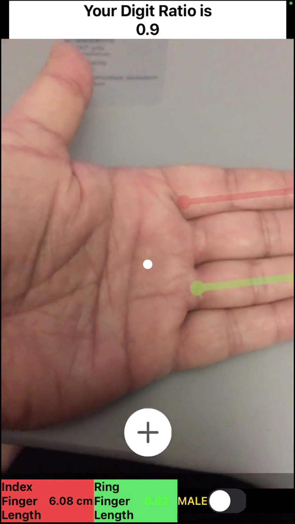 2. The app automatically calculates your Digit Ratio and predicts the following