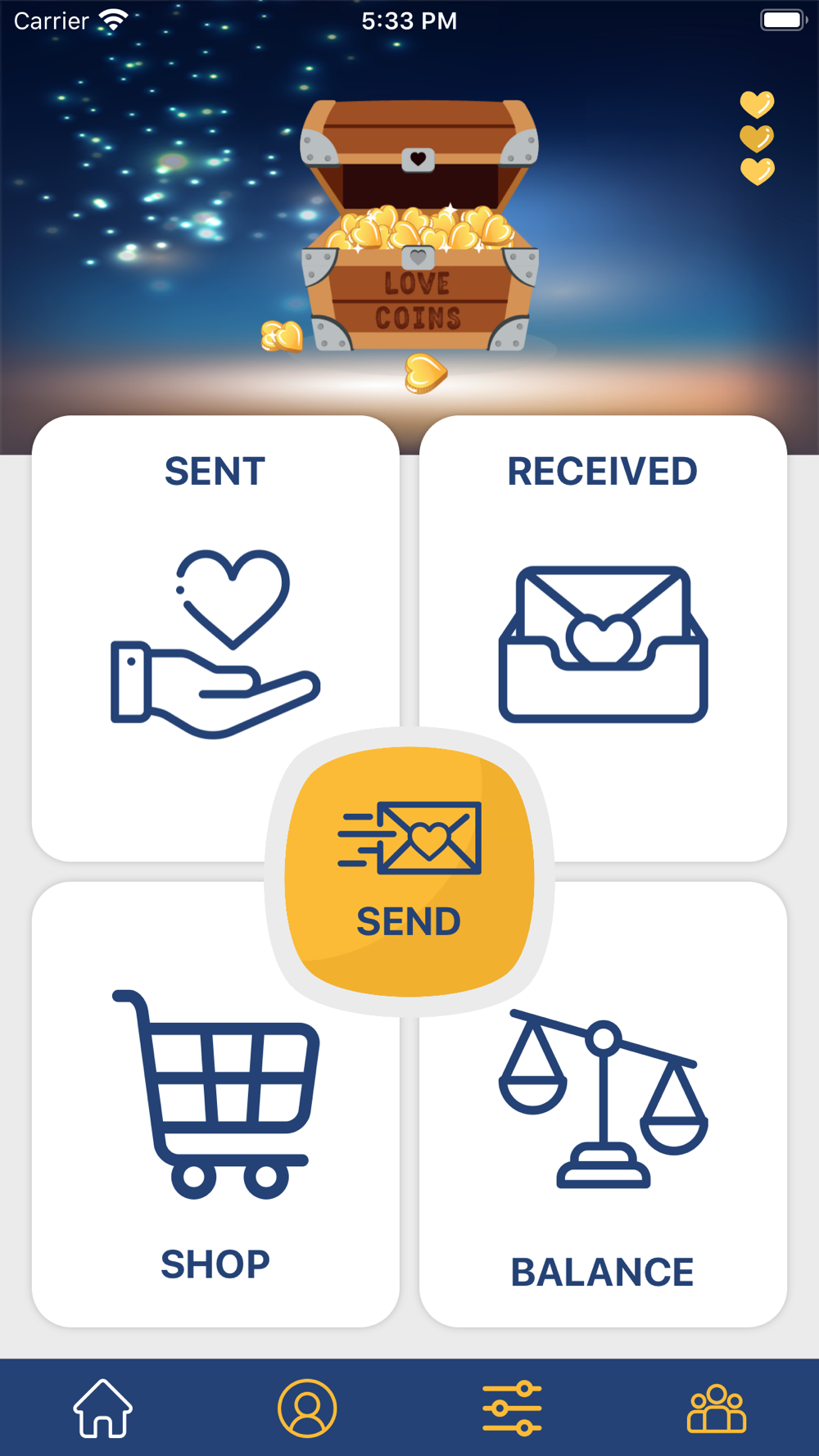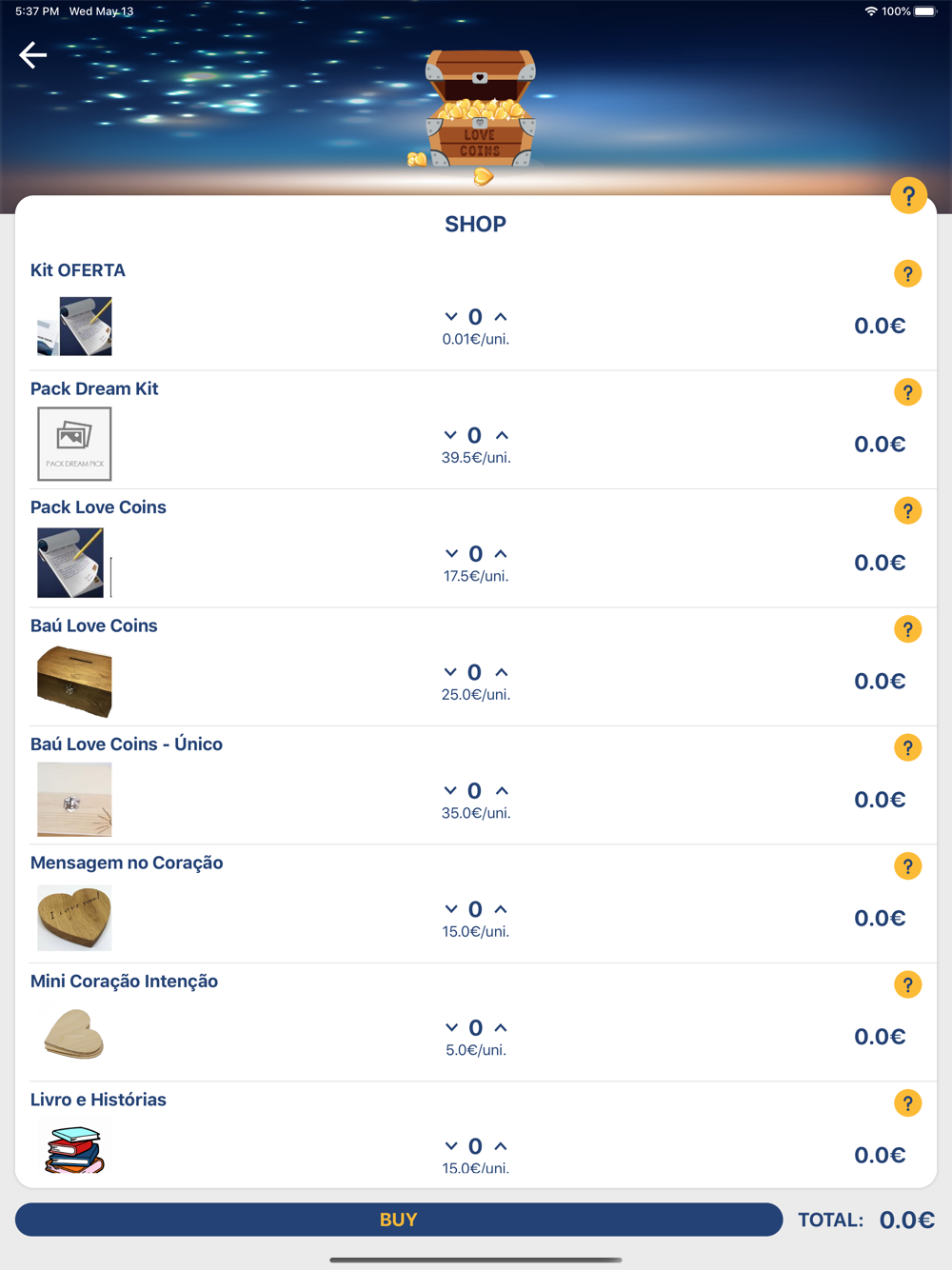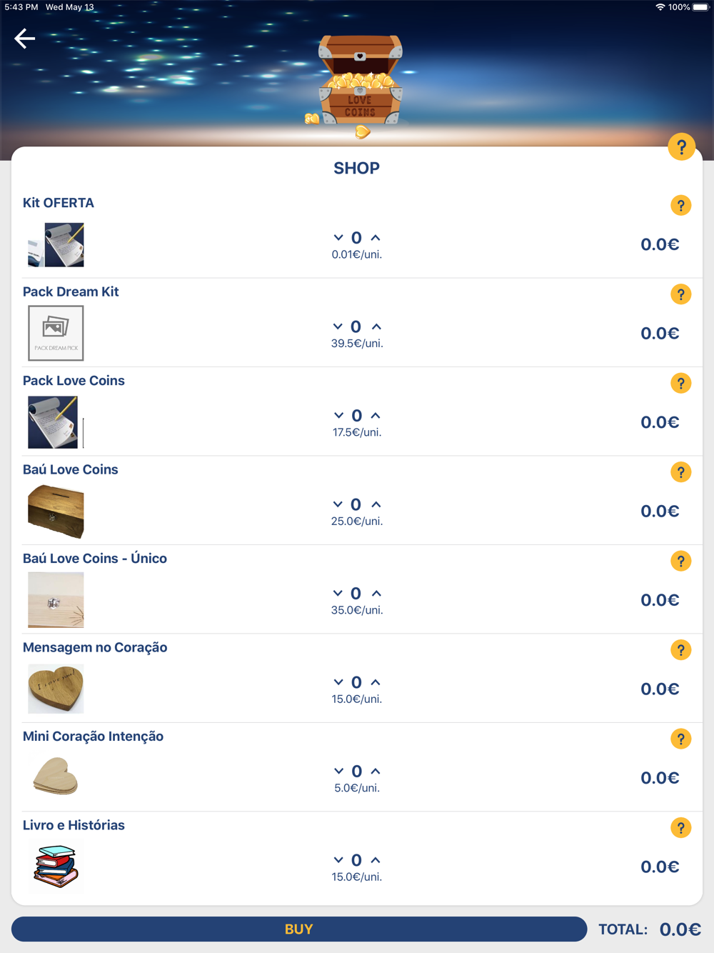 With the purpose of "not let to tomorrow what you wish to say today to someone", this App allows you to instantaneously and easily send your Love Coin to anyone everywhere in the world, expressing your pure feelings, linking the heart feelings to the brain to your hands, your Love Coins is the pure and congruent manifest of your purest feelings to the one which will enrich his/her treasure chest of Love.