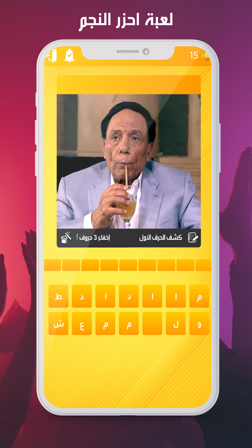 لعبة خفيفة تختبر ذكائك ومعرفتك بالنجوم العرب فمثلا ستظهر لك صورة نجم او ممثل عربي مثل محمد رمضان