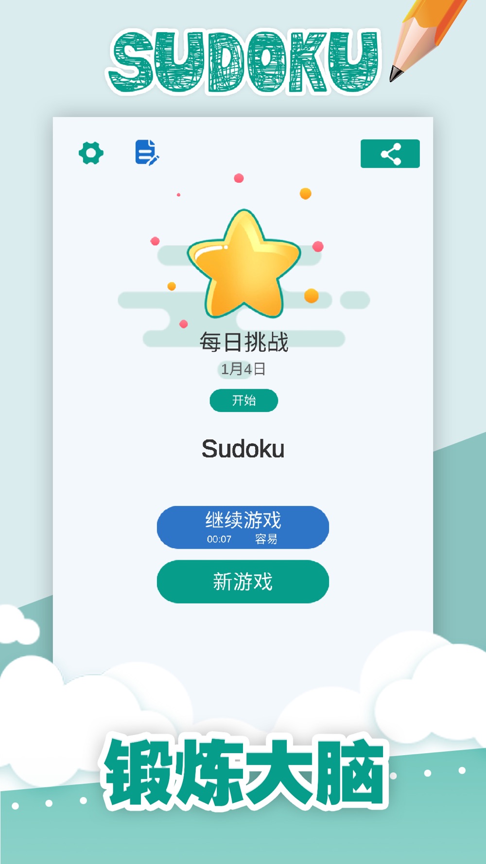 -4种难度,容易/中等/困难/大师,训练你成为数独大师!