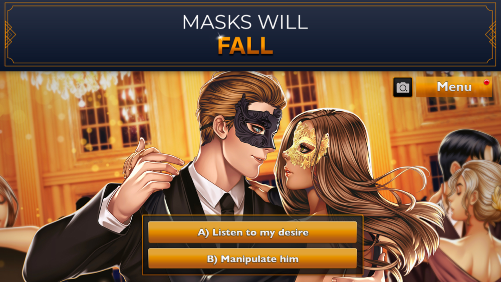 You will take on the role of a heroine with a quick wit and word-class comebacks. But watch out… At Secret Palace, everyone hides behind a mask! The choices you make along the way will influence the path the story takes! There'll be a whole heap of love… but will it survive the pain of betrayal?