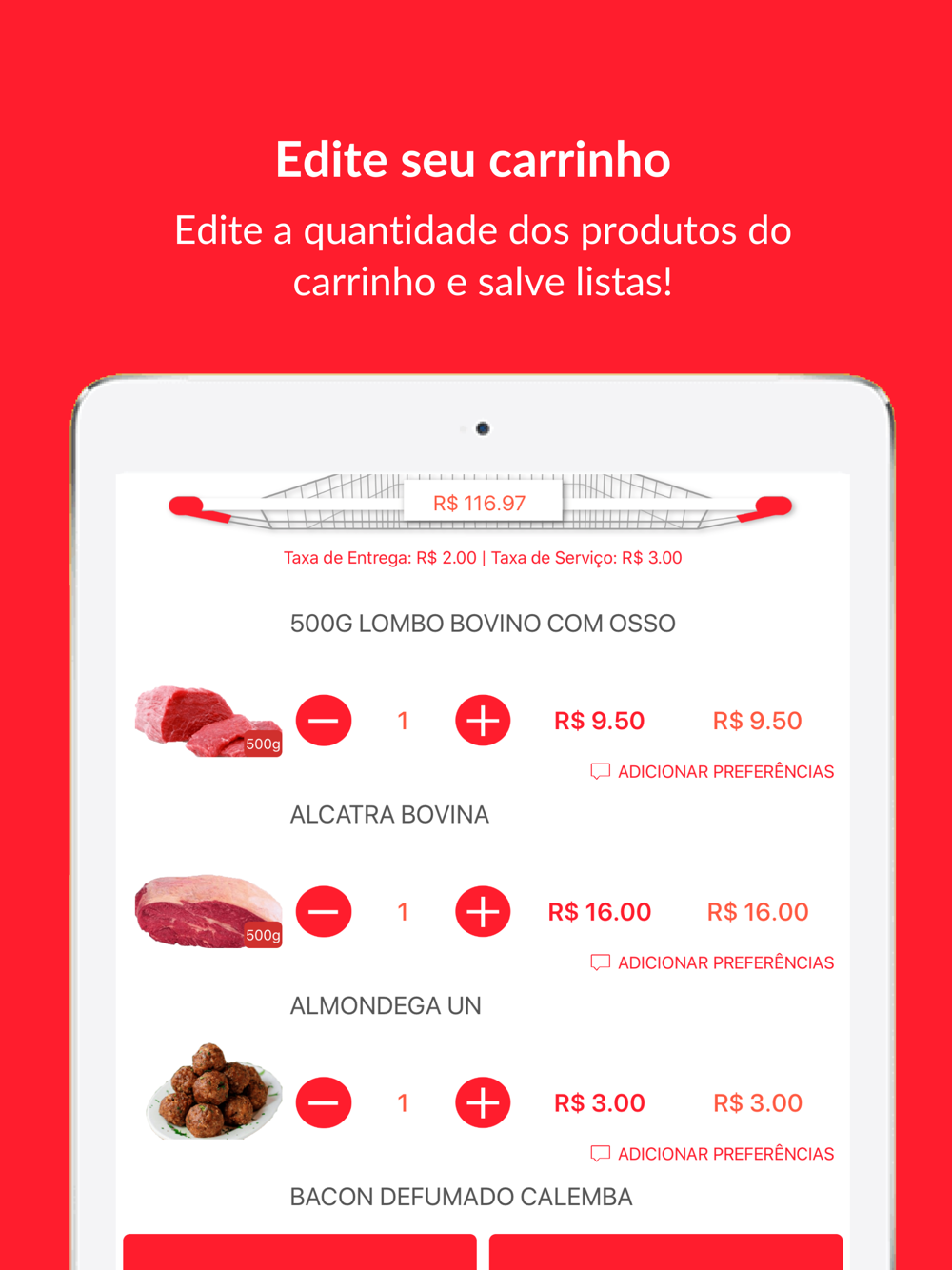 • Adicionar produtos no seu carrinho com um simples tocar e arrastar.