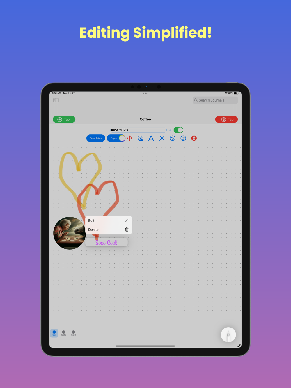 Unleash your creativity and make your journals truly personal by incorporating original drawings and cover images from your image library. Take daily notes, track habits, create agendas, and build useful calendars, all within a comfortable digital space.