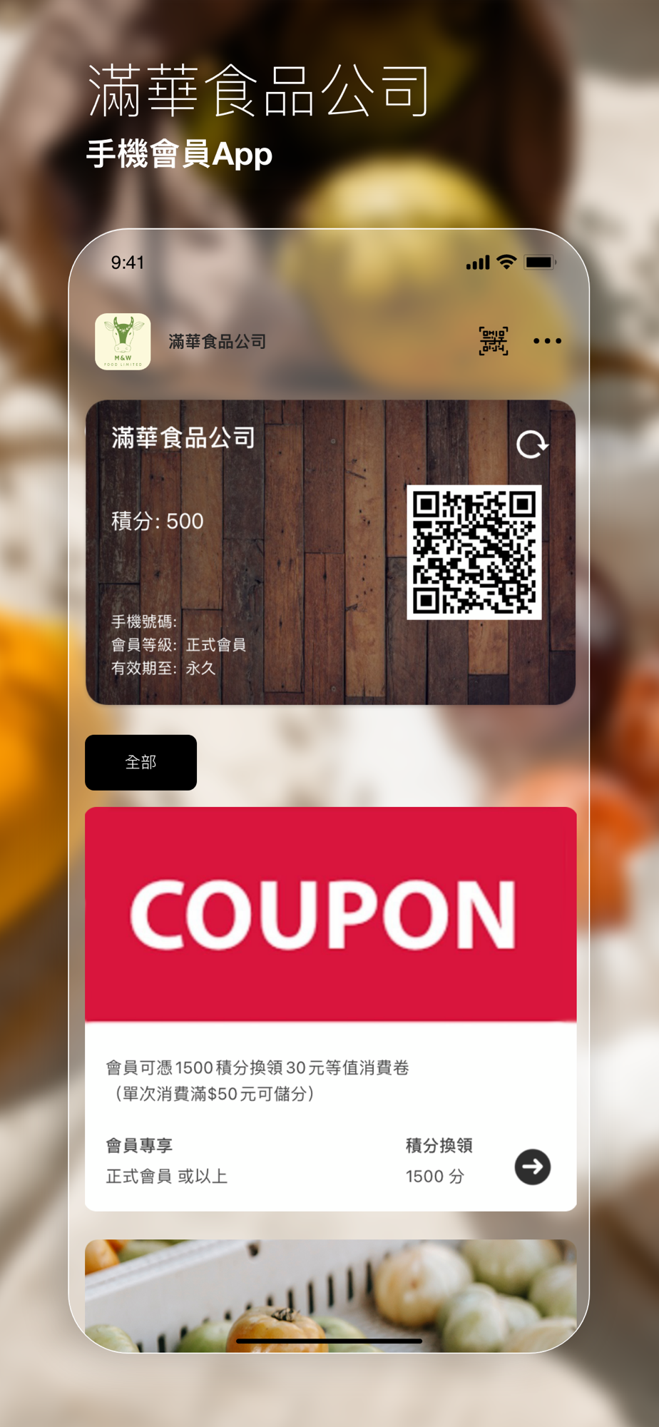 * 手機會員卡:下載手機程式並登記成為正式會員,即可隨時隨地查閱最新會員積分。