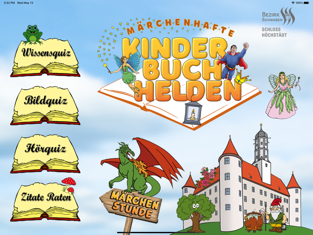 Mit unserer KinderBuchHelden-App könnt ihr in der Ausstellung und zuhause bei einem Wissens-, Bild- und Hörquiz und beim Zitate-Raten eurer Märchen-Wissen unter Beweis stellen. Zudem könnt ihr euch eine Auswahl beliebter Grimm-Mächen vorlesen lassen: Der Froschkönig, Tischlein deck dich, Dornröschen, Aschenputtel, Die Bremer Stadtmusikanten, Hänsel und Gretel, Das blaue Licht, Das tapfere Schneiderlein, Rapunzel und Der goldene Vogel.