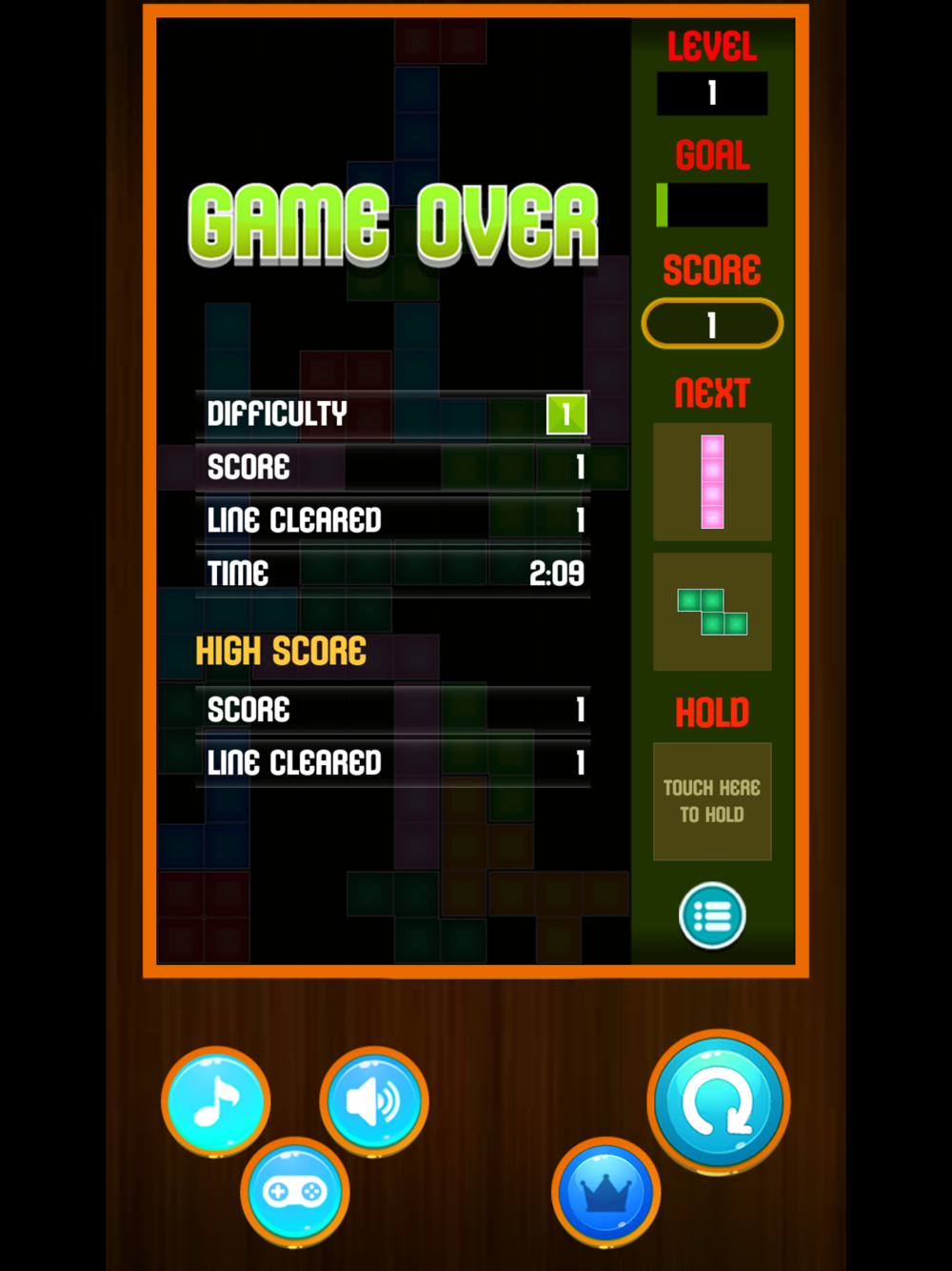 -> Try to fit them all into all the row or column. Then the blocks will be clear and you get points and scores.