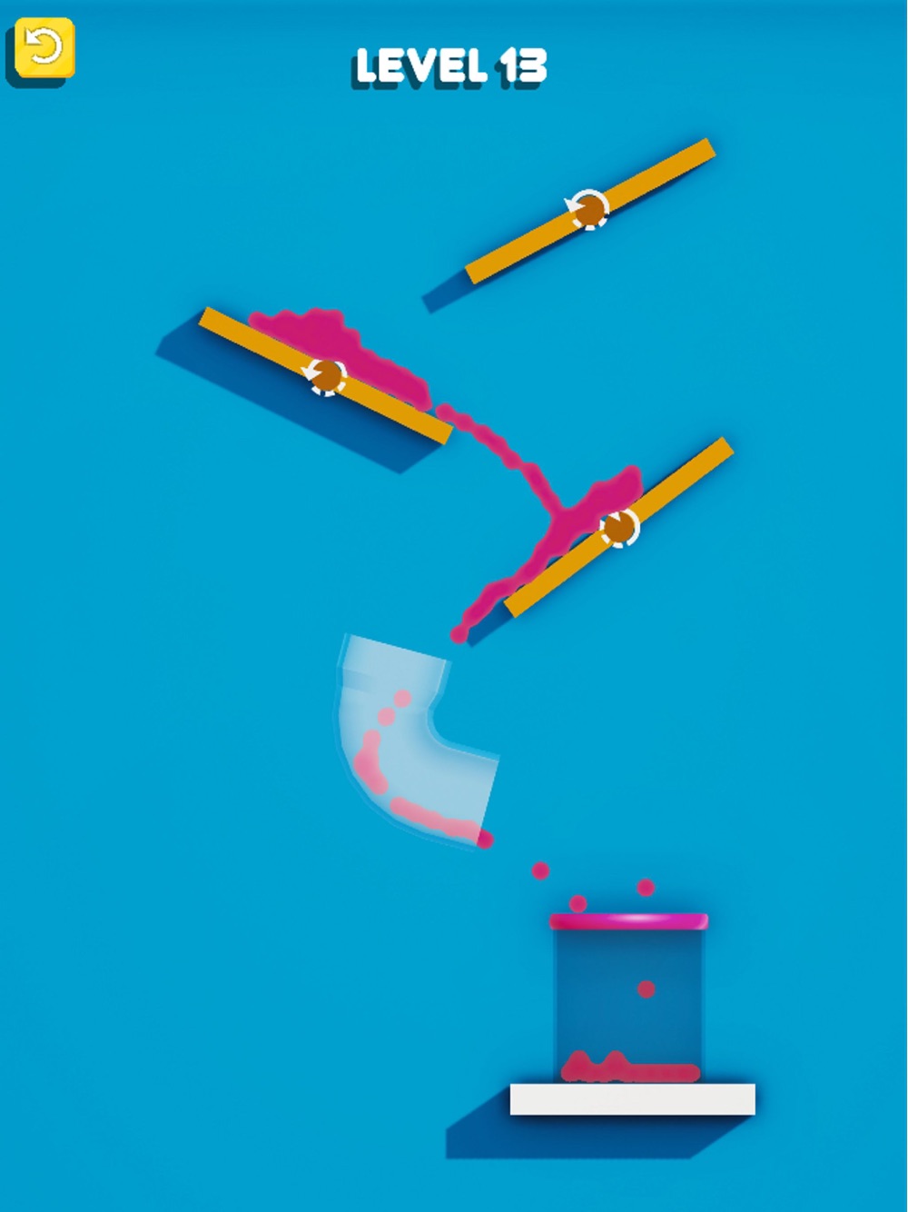 Change the positions of blocks and let liquids find their way. It’s a little bit splashy, don’t let it to fall out!