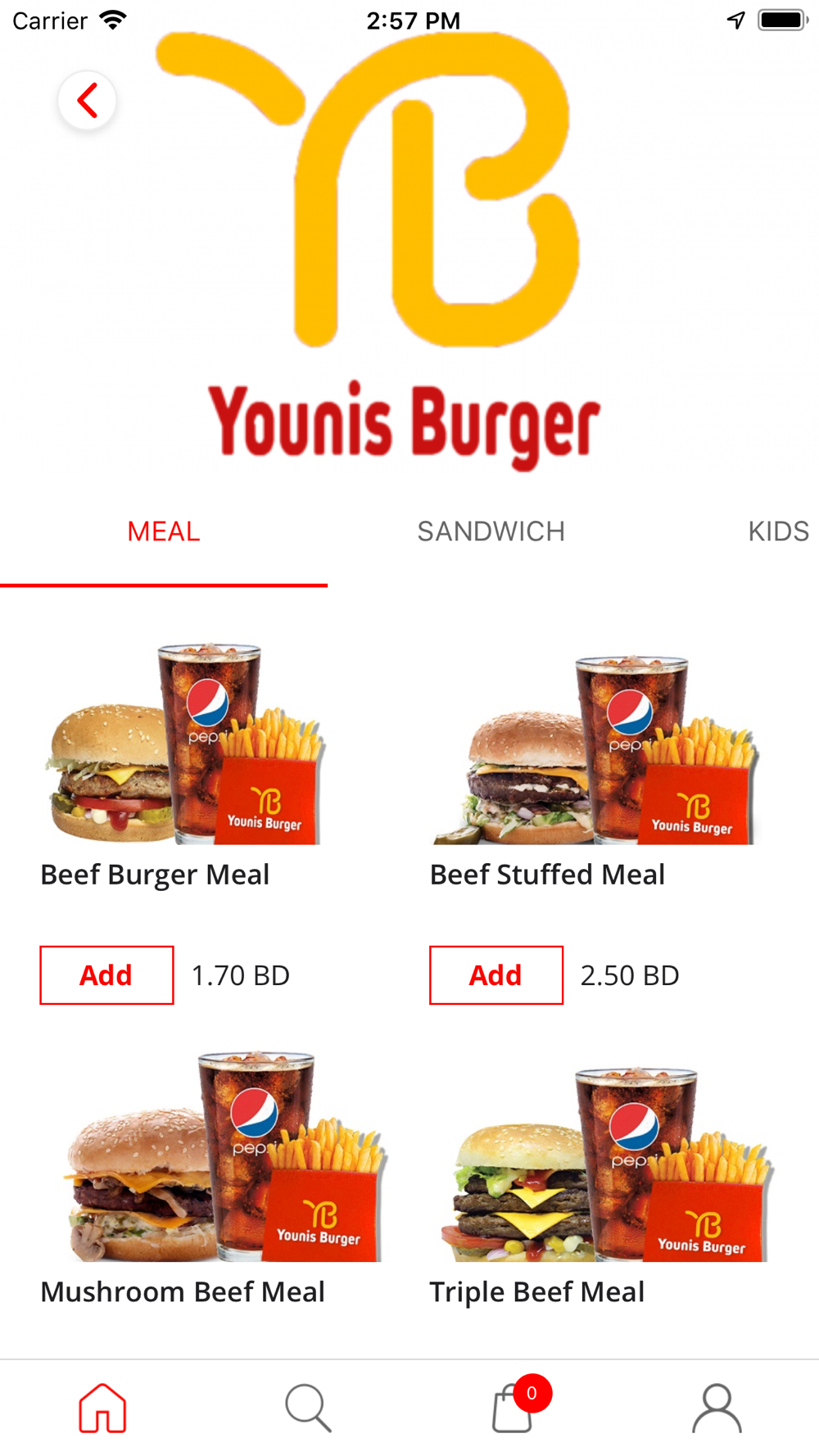 It's simple food delivery app and allows quick login through phone number. Select franchises -> select items -> add to cart and checkout.