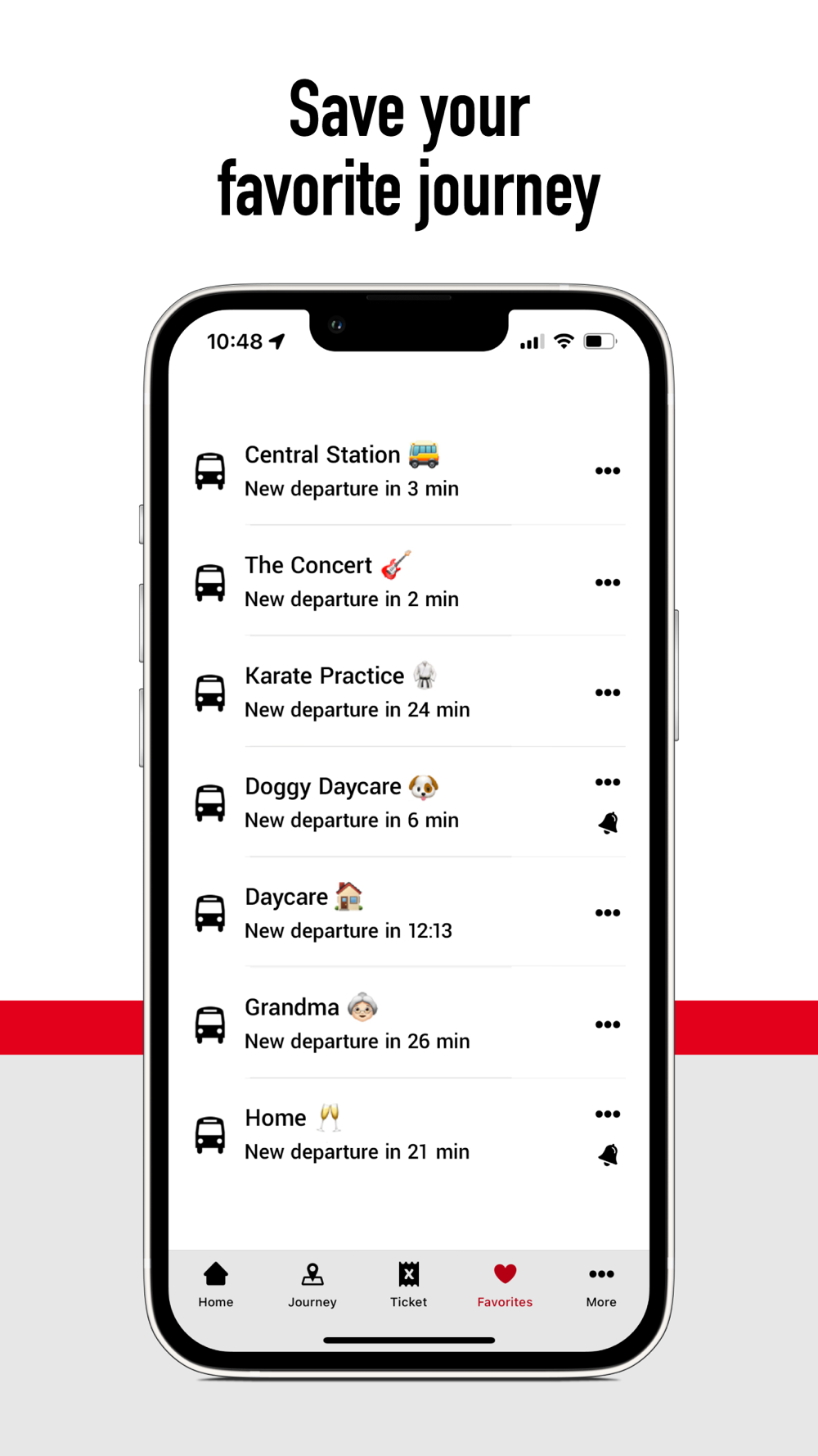 • Use the heart symbol to save routes or trips as favorites and quickly get new information when the next bus or train departs.