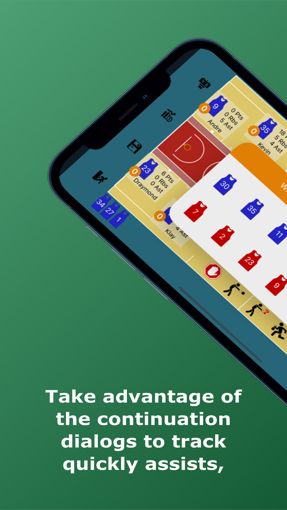 - Track second plays with just a tap thanks to the continuation dialogs that will appear on the screen after any field goal is missed or scored, fouls are committed or drawn, steals or turnovers.