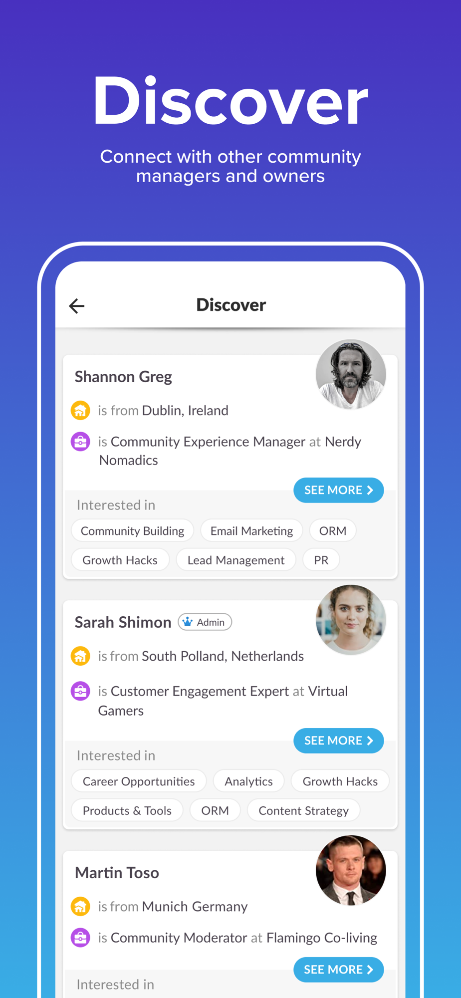 CM'ers is the largest platform to network with verified community managers across the globe. It is a private and highly secured one-stop-shop for community managers to learn, grow, and explore opportunities in the role.