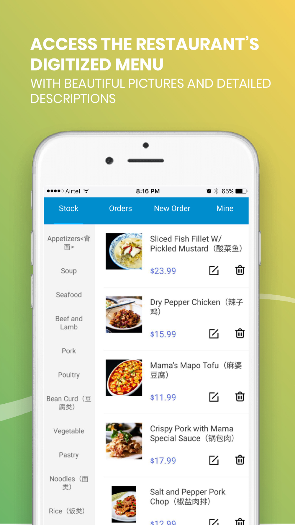 The app lets you create a digital menu directly from your iOS device (iPhones and iPads both). Add items, pictures, pricing, tax rates, and even specifications directly thanks to the user-friendly interface.