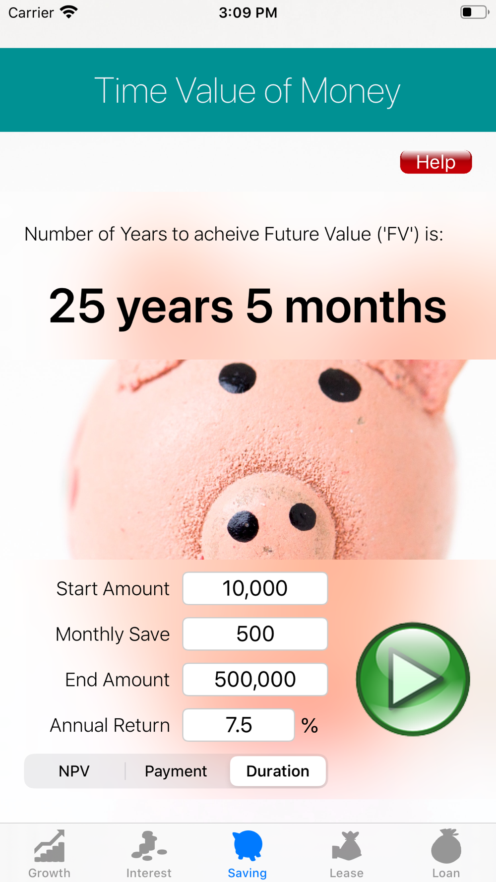 3. Net Present Value ('NPV'): calculates the future value and NPV of the investment.