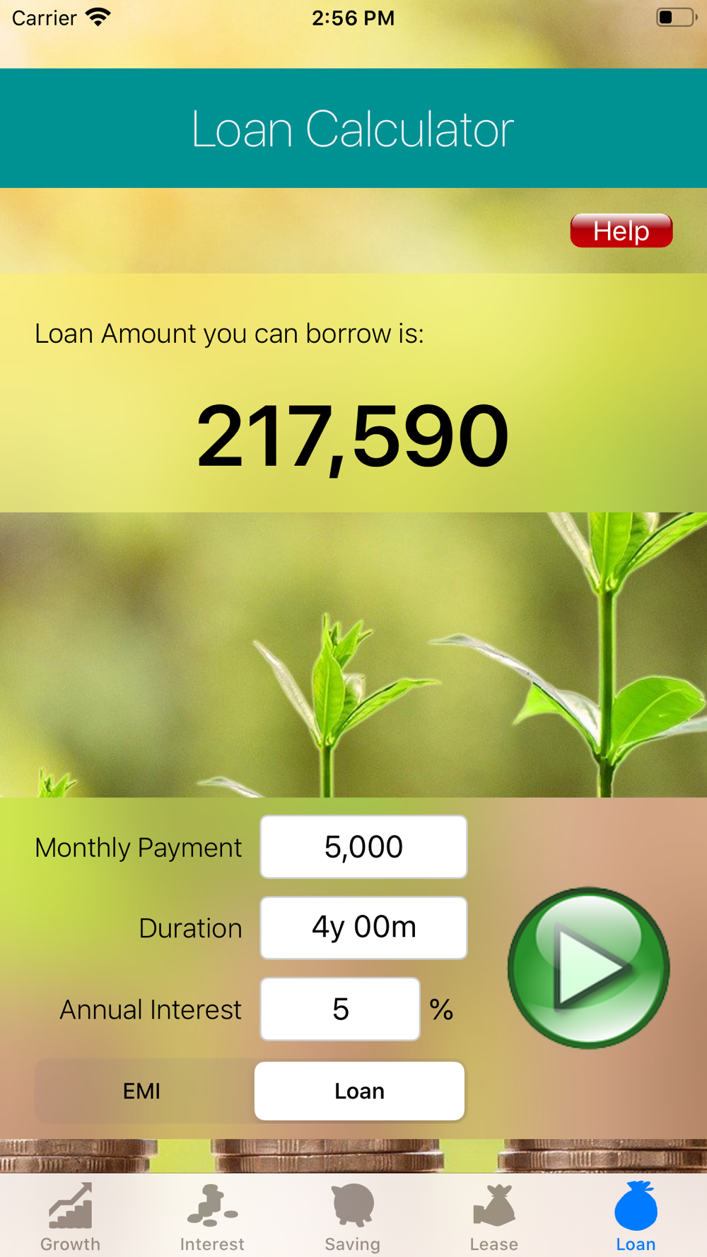 10. Loan Repayment: calculates the monthly repayment amount based on the defined APR.