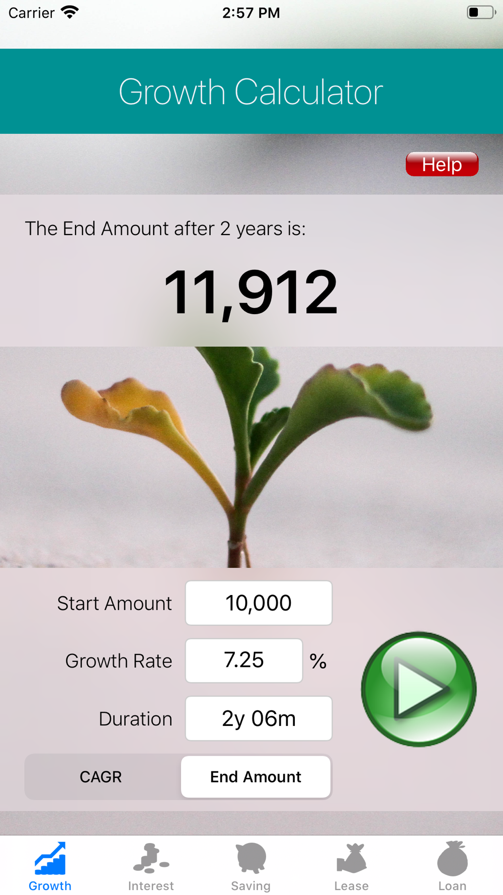 2. Compounded End Amount: calculates the final (end) amount at the end of the period once a compounded growth rate has been applied.