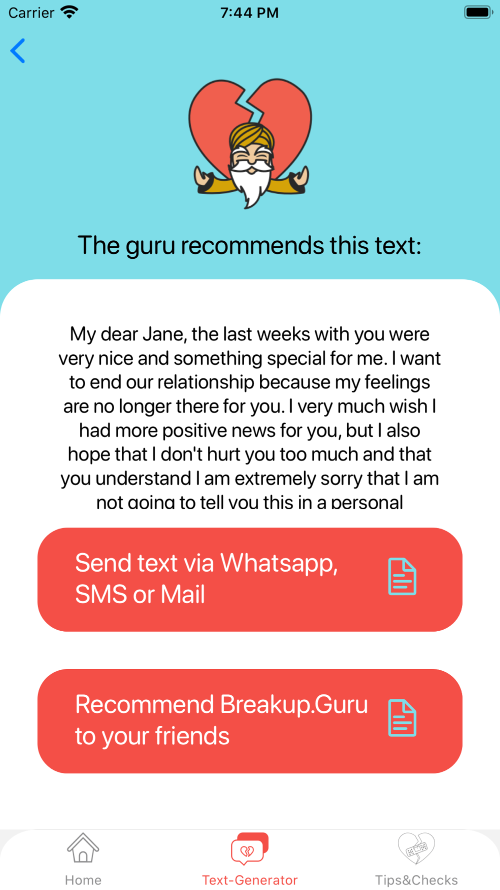 Breakup.Guru has the best tips, checklists and the ultimate text generator for a stylish farewell for a one-night stand, or when your relationship ends.