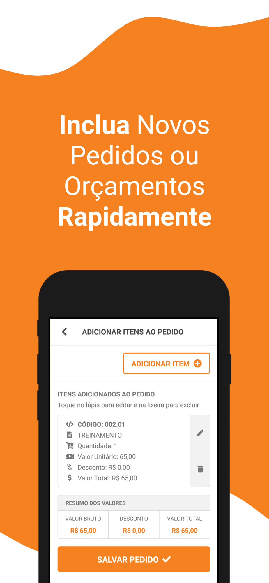 O aplicativo permite trabalhar remotamente com diversos processos de um pedido de venda, além de possibilitar o cadastro de clientes.