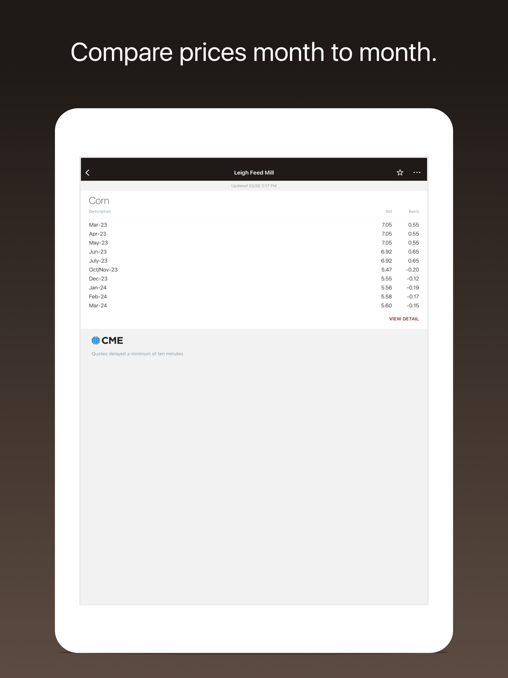 Futures: See Grains, Feed, Livestock, and Ethanol futures listed in order of your preference