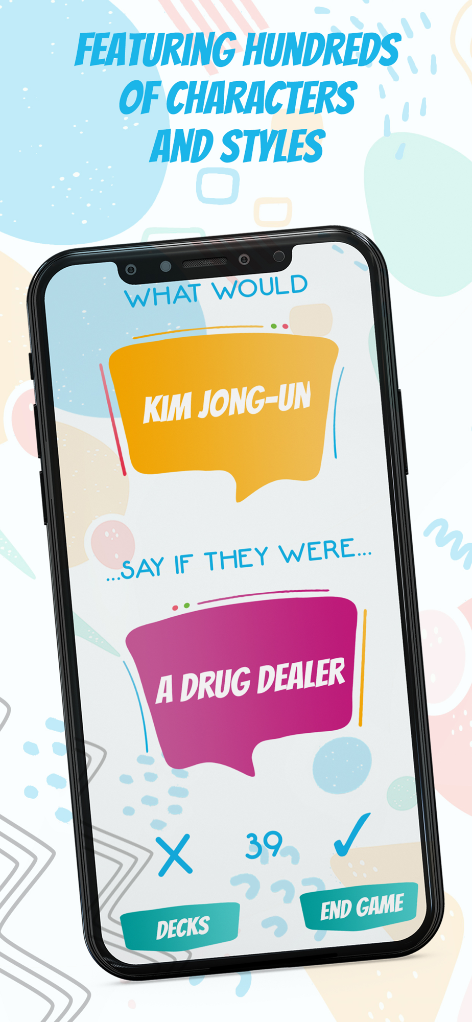 From celebrities to politicians, no-one is safe from ridicule as you attempt to guess the character and the style from your friend's quotes before the timer runs out!