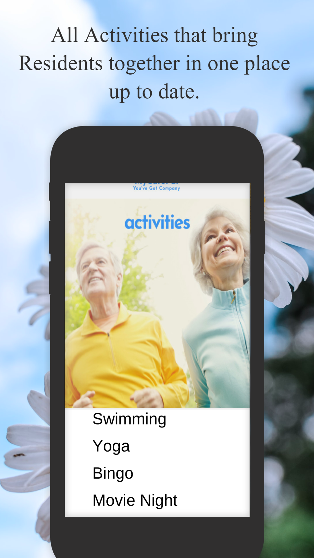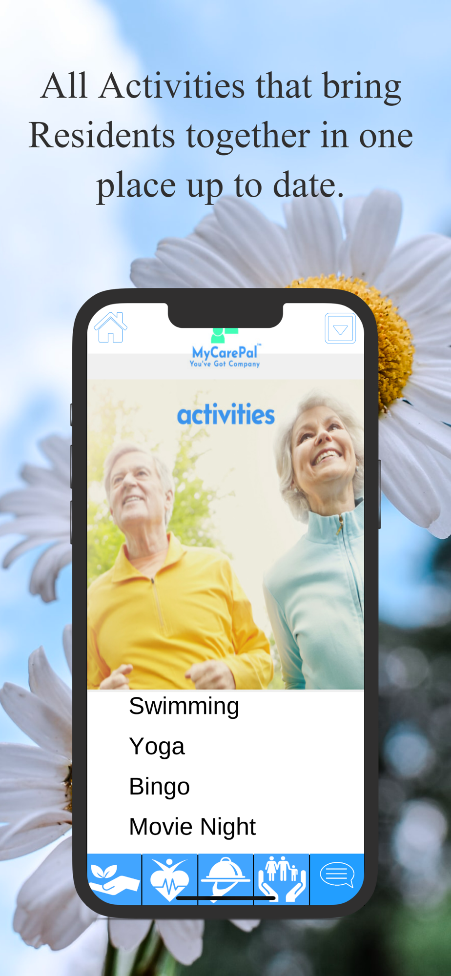 With My CarePal, you’ve got company. Our Retirement Home and Assisted Living residents can download My CarePal, login, and find all their Residence and Retirement Village Amenities in one place. My CarePal has links to events, activities, and dining info. Residents can order food, salon services, a massage, a shuttle, and more. My CarePal has a section for residents to track their medications, important doctor/family phone numbers, download a customized workout plan, and social media links. Residents can even send a postcard to friends and family. Lonely and want to chat? Or just have questions about Residence amenities or need an uplifting word? Talk to our 24/7 Chatbot Cora. My CarePal is customized to each residence with an easy to read font and simple navigation. And, everyone gets a hug.