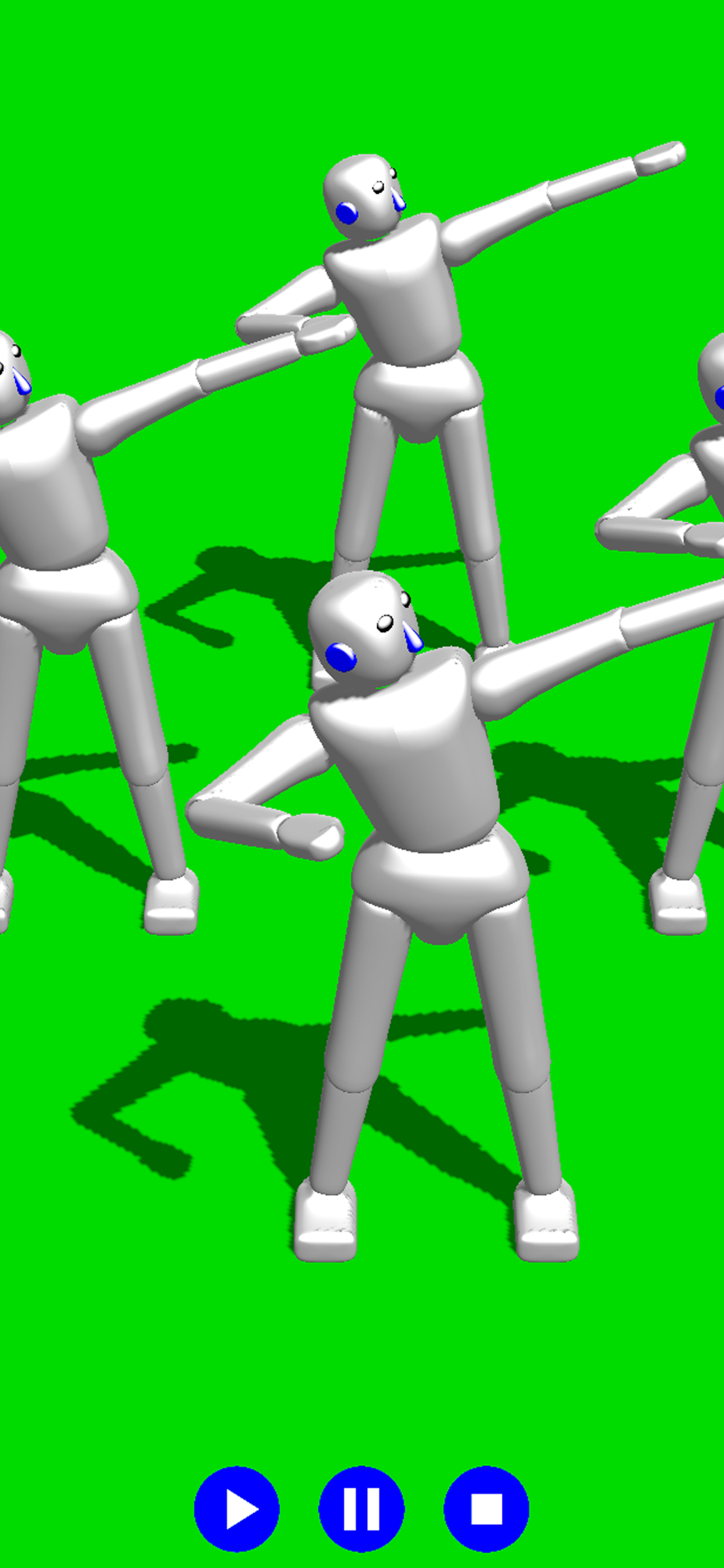 On the compose screen, use any upper pose with any lower pose to form a complete pose by select them from the 2 columns on the right with a tap on them. Center robot will show the combined pose. From the selected poses beside the center robot, drag the lower pose to the lower box and upper pose to the upper box of the same column in the bottom rows to compose a performance. Leave empty box to slowdown action or between 2 same poses to pause an action.