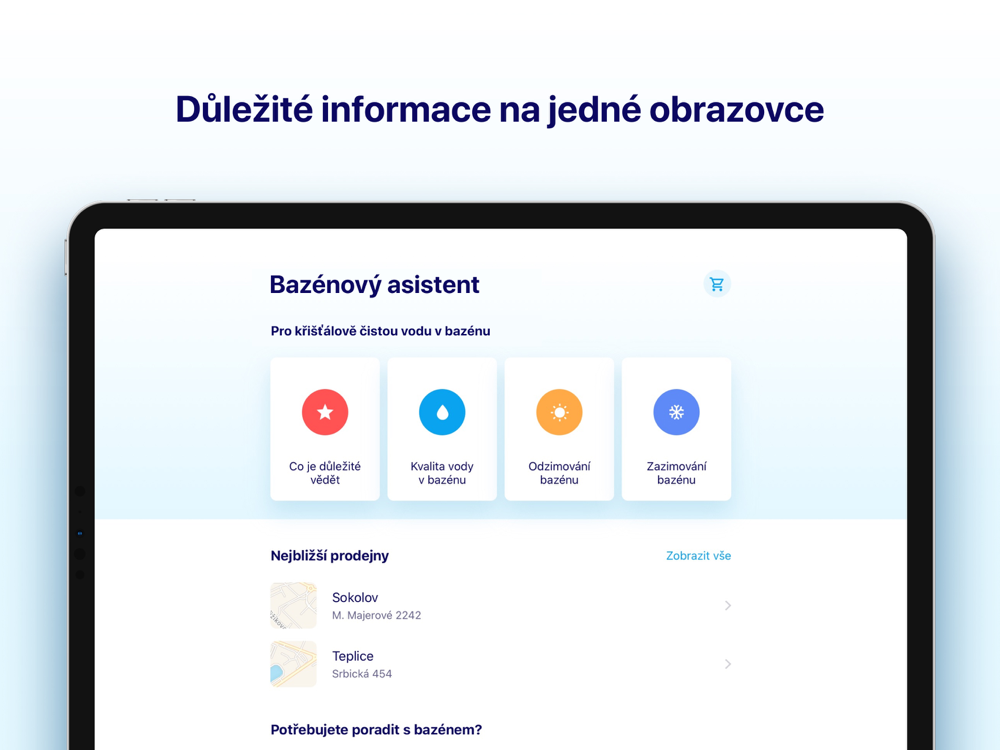 Aplikace bazénového asistenta Vám poradí, jak mít vodu stale čistou a jak řešit případné problémy s vodou ve vašem bazénu. Náš rádce s lehkostí provede jednotlivými úkony ať už se jedná o běžnou údržbu, nebo i vybrané složitější úkony.
