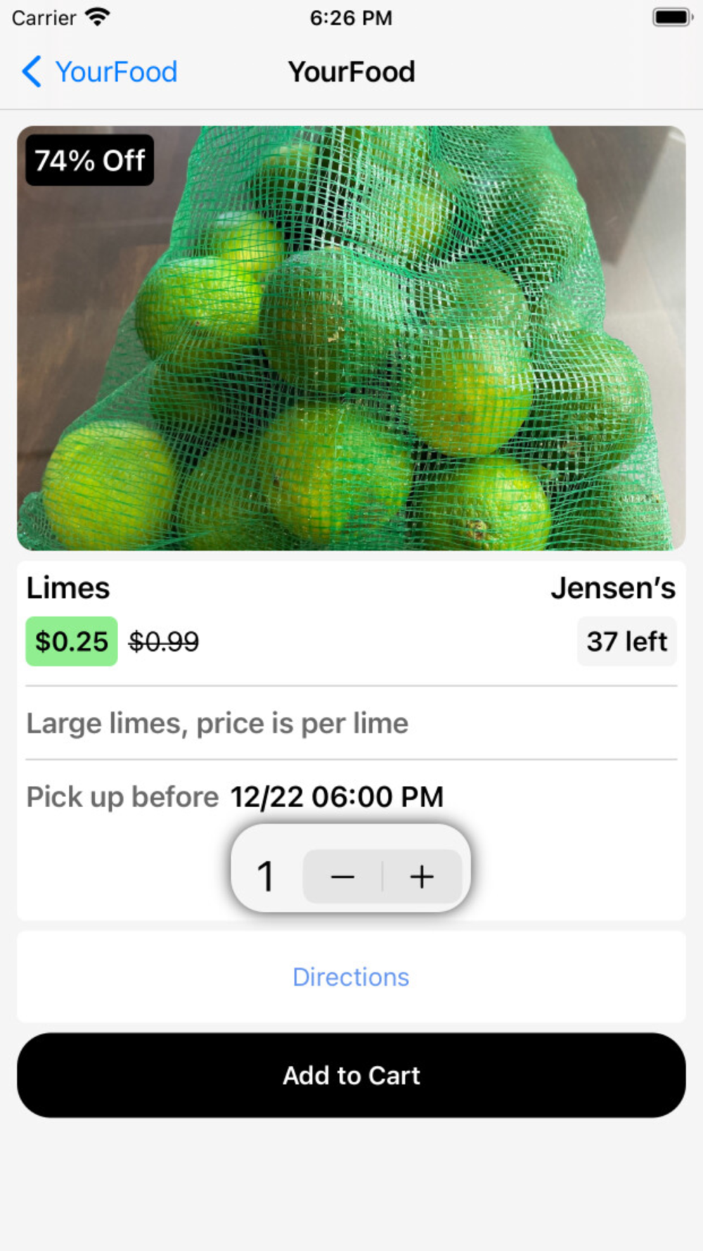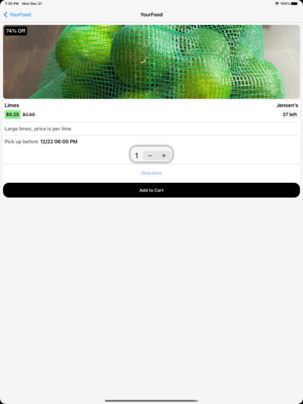 Your Food connects you to discounted food that wasn't bought, looks weird, or is overstocked, but is otherwise perfectly okay to eat! The app shows you where to find these items and let's you buy them directly from your phone. As well as saving money, you will save peace of mind knowing you're not letting the food go to waste. All food not bought will be donated. Try it today for free, no purchase necessary for food that is free.