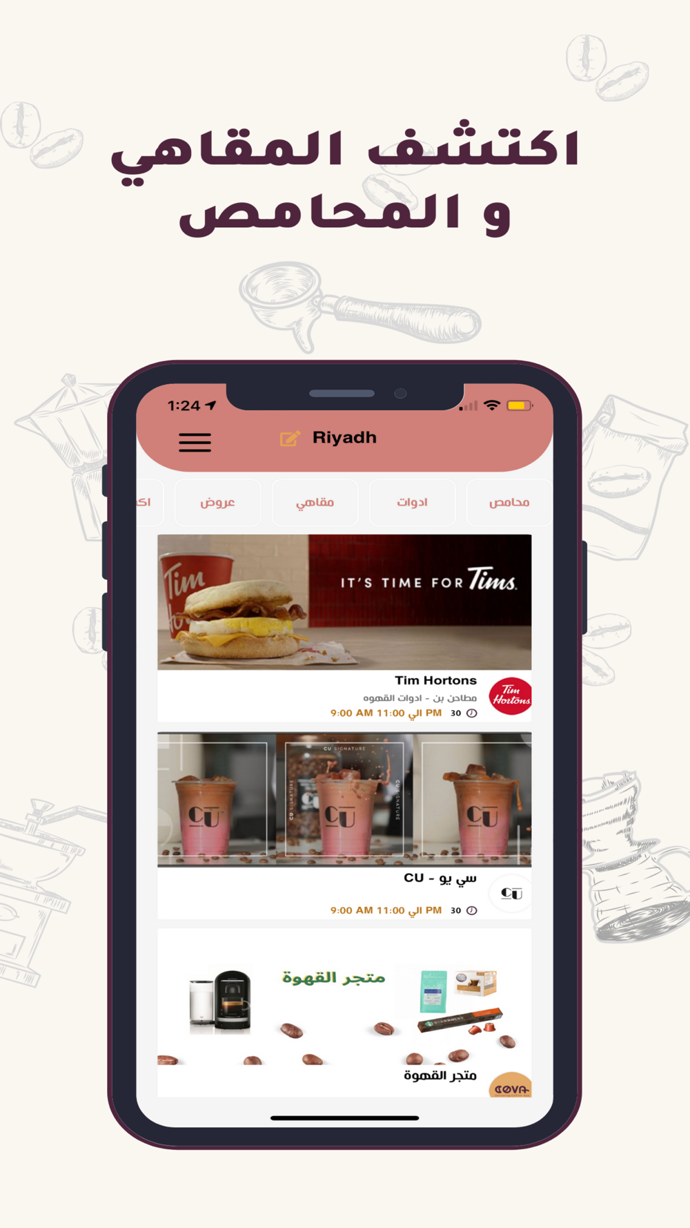 تطبيق كوفا المتخصص في توصيل طلبات القهوة والحلويات حصرياً