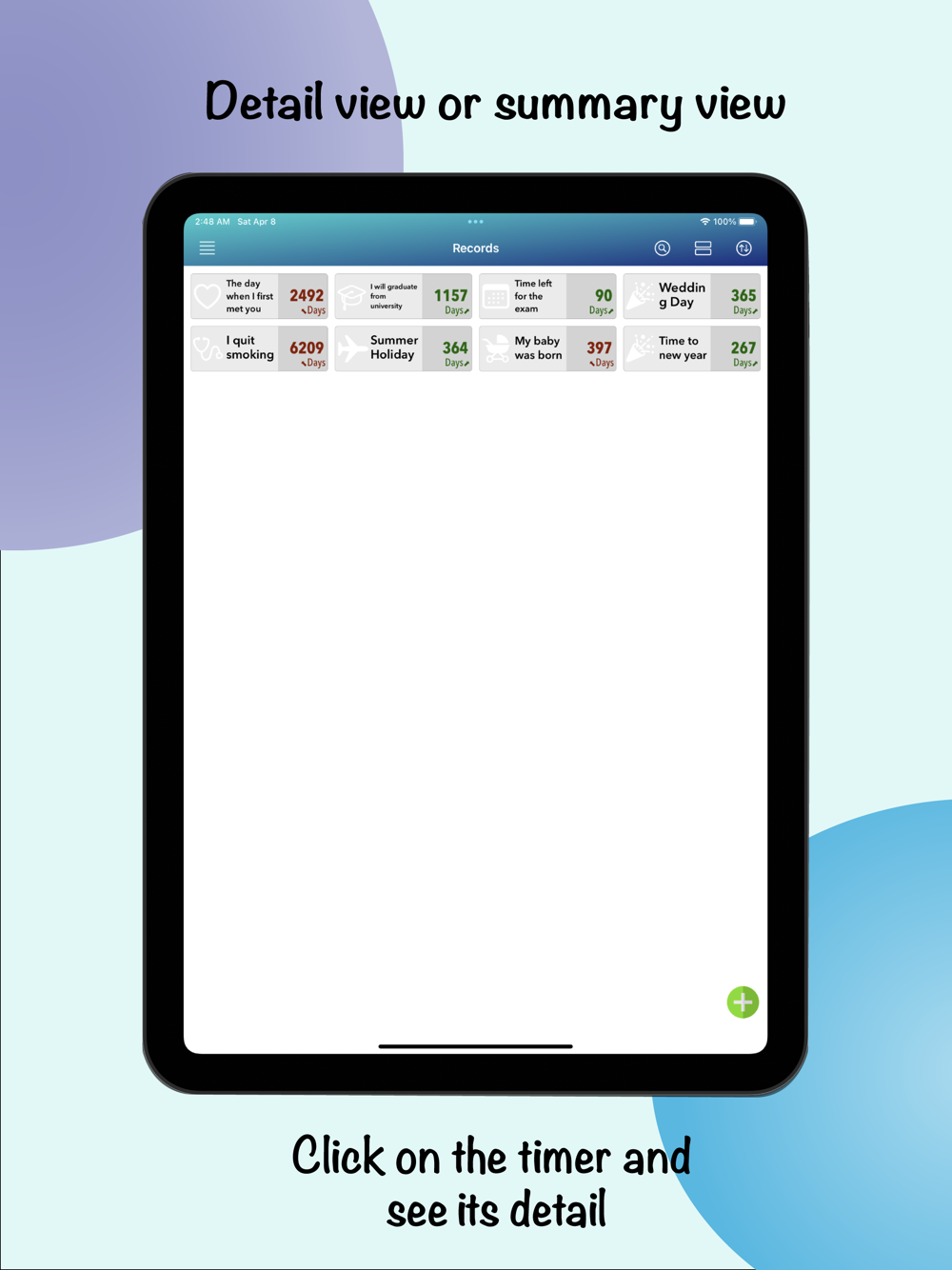 This application has been developed to mark the days that are important for you and calculate the time elapsed since that date.