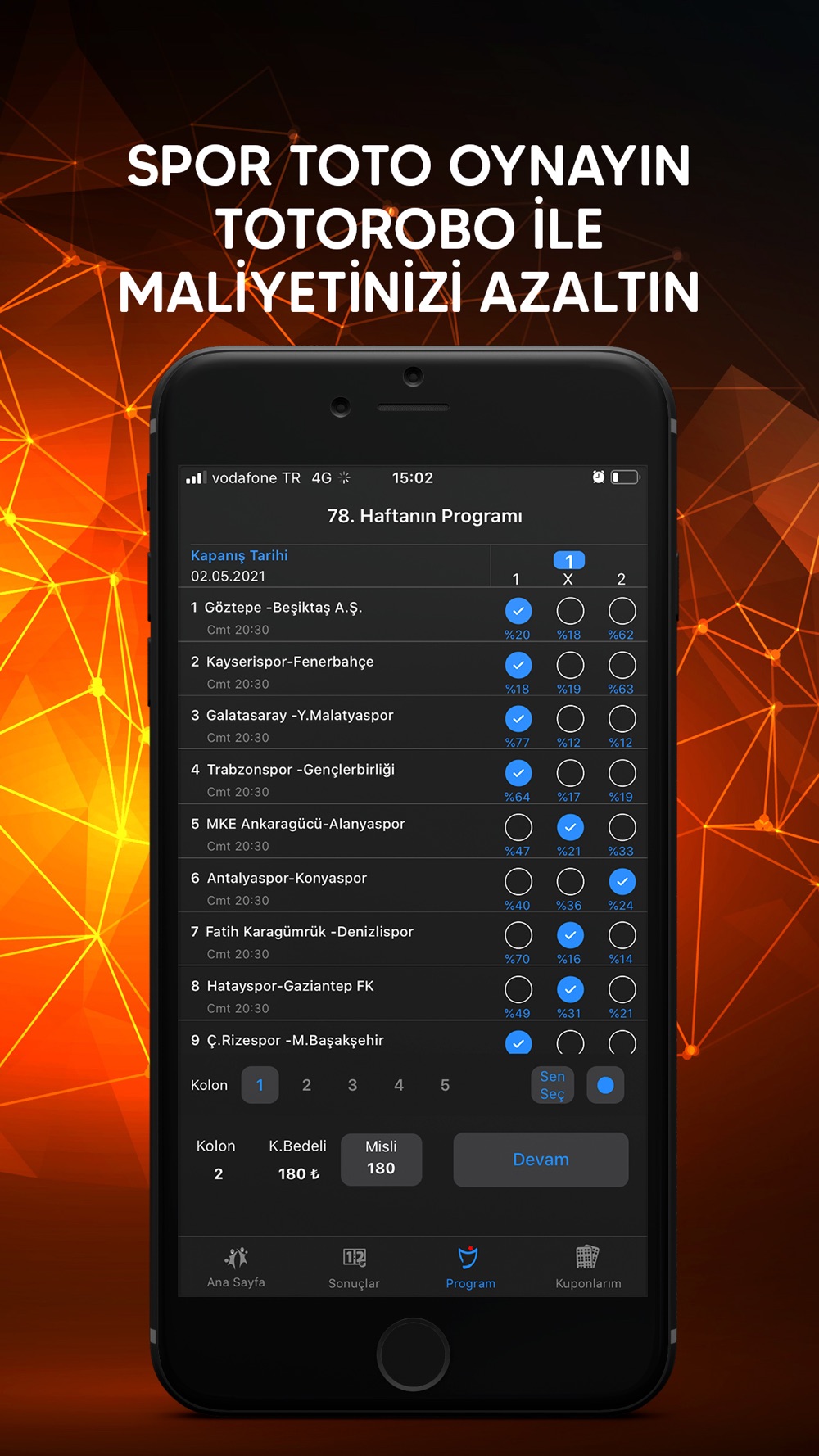 Spor Toto’nun yasal elektronik bayisi Birebin.com’un ücretsiz uygulamasında İDDAA ve CANLI BAHİS oynayabilir, SPOR TOTO kuponu yapabilir ve CANLI SKORLARI ve MAÇ SONUÇLARINI takip edebilirsiniz.