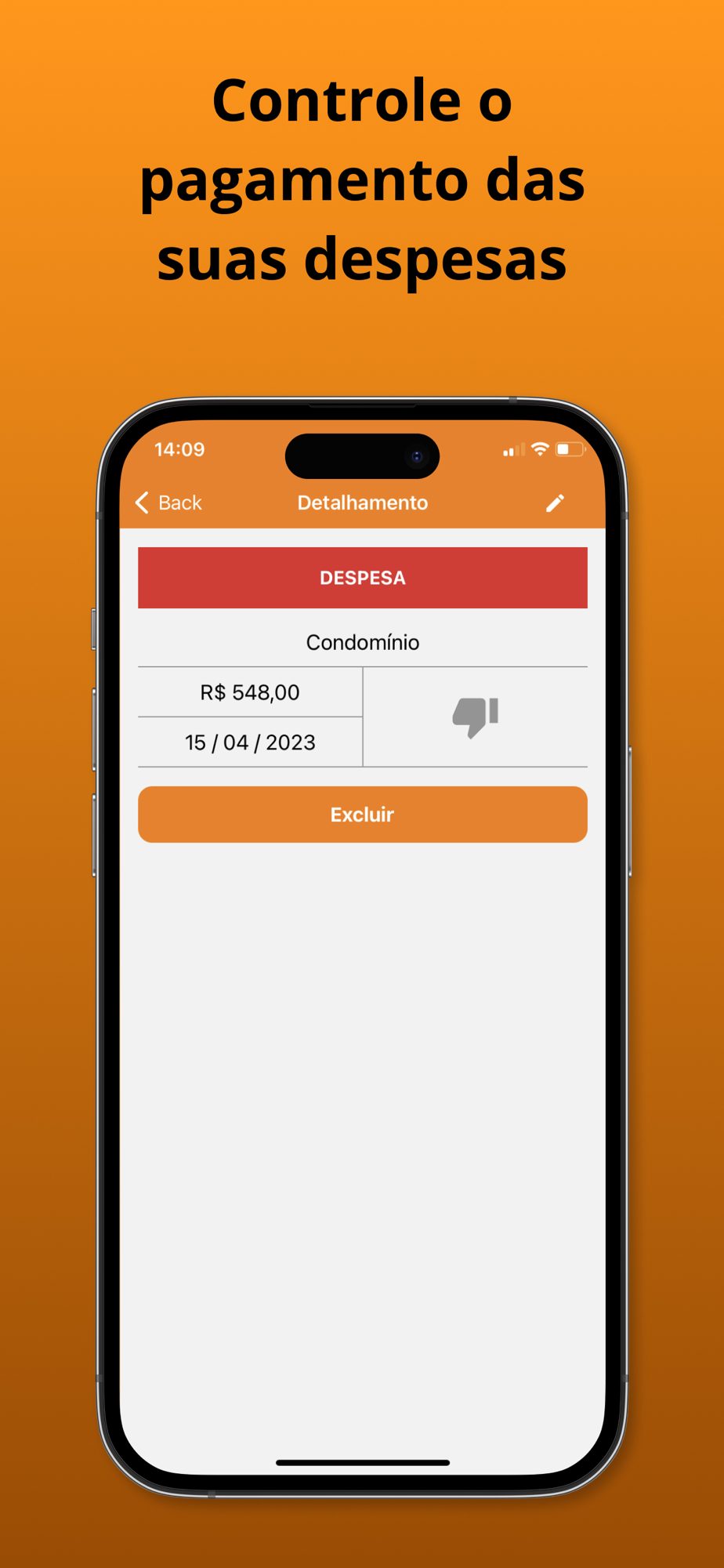 Detail Screen - displays the details of the movement. In this screen it is possible to indicate the receipt or payment of the movement and it is also possible to exclude it (from the portion of that month or from all the next ones, when the revenue or expense will not happen). You can also request to edit the expense.